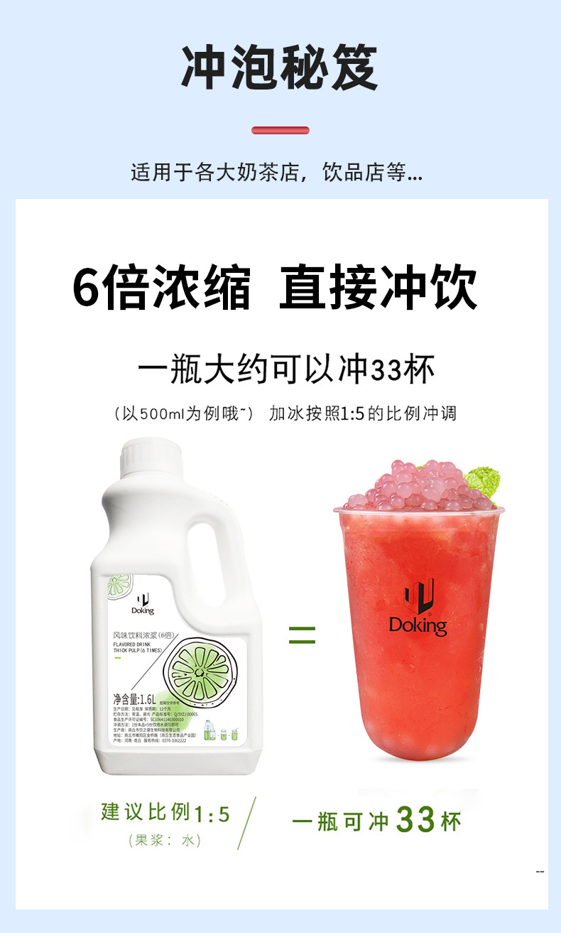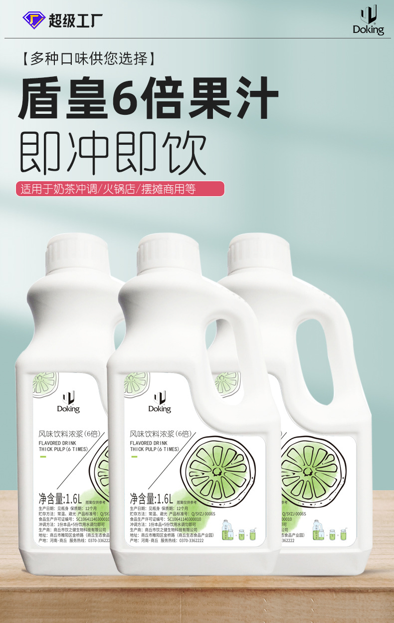 Dunhuang 6 Times Concentrated Juice 1.6L Passion Fruit Kumquat Lemon Juice Willow Orange Juice Drink Juice Milk Tea Wholesale