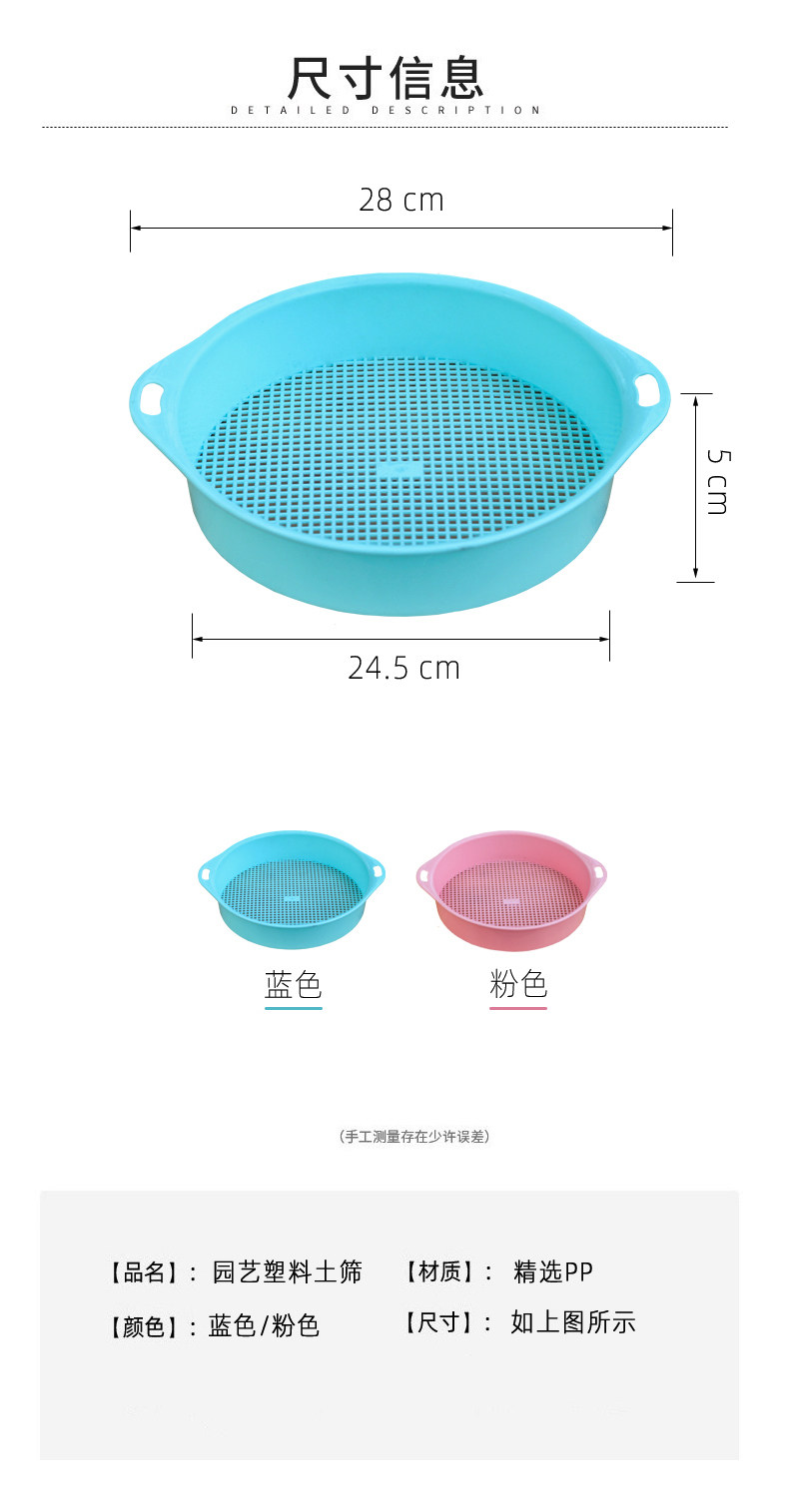 花园方孔土筛塑料筛网3mm筛土器家庭园艺过滤土石工具土壤颗粒筛