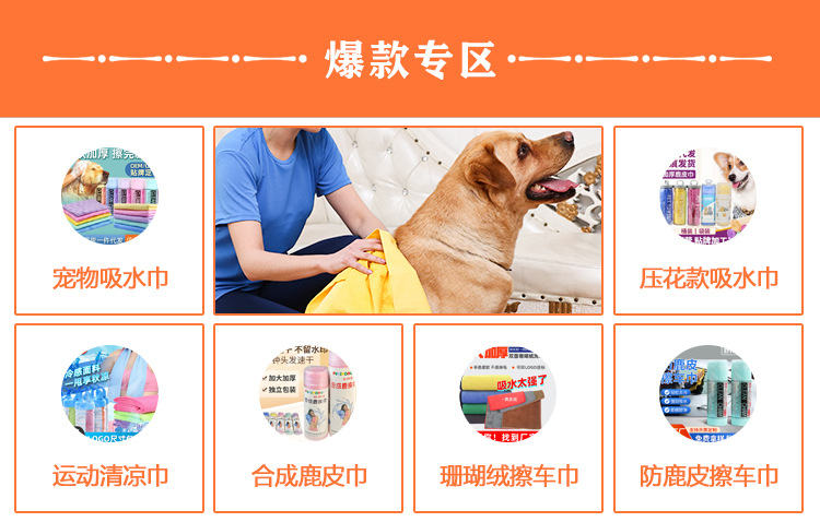 宠物吸水毛巾批发多功能加厚鹿皮巾狗狗猫咪清洁速干浴巾不沾毛