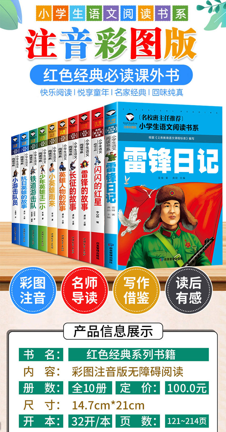 Red classic story children's patriotism education reading book color picture phonetic version Primary School students extracurricular reading books