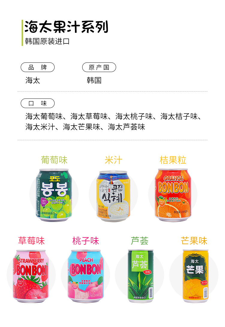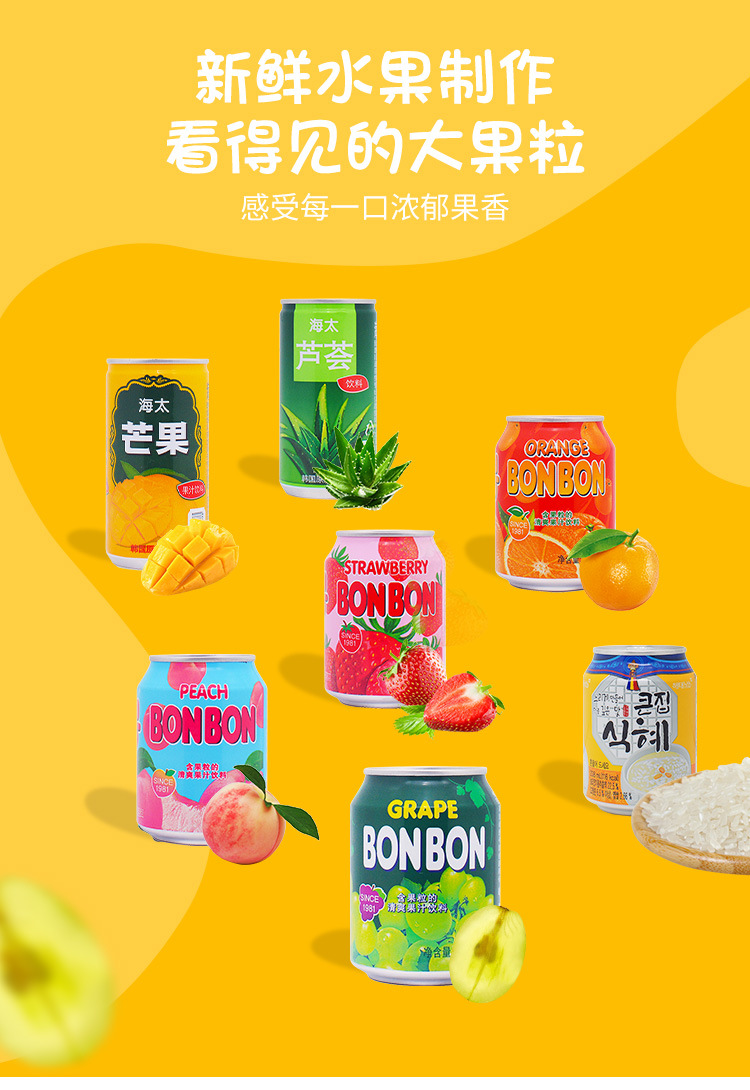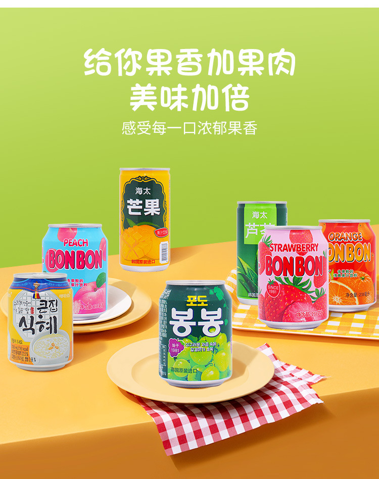 包邮韩国原装进口海太饮料葡萄桃子橘子草莓芒果混合果汁量大询价