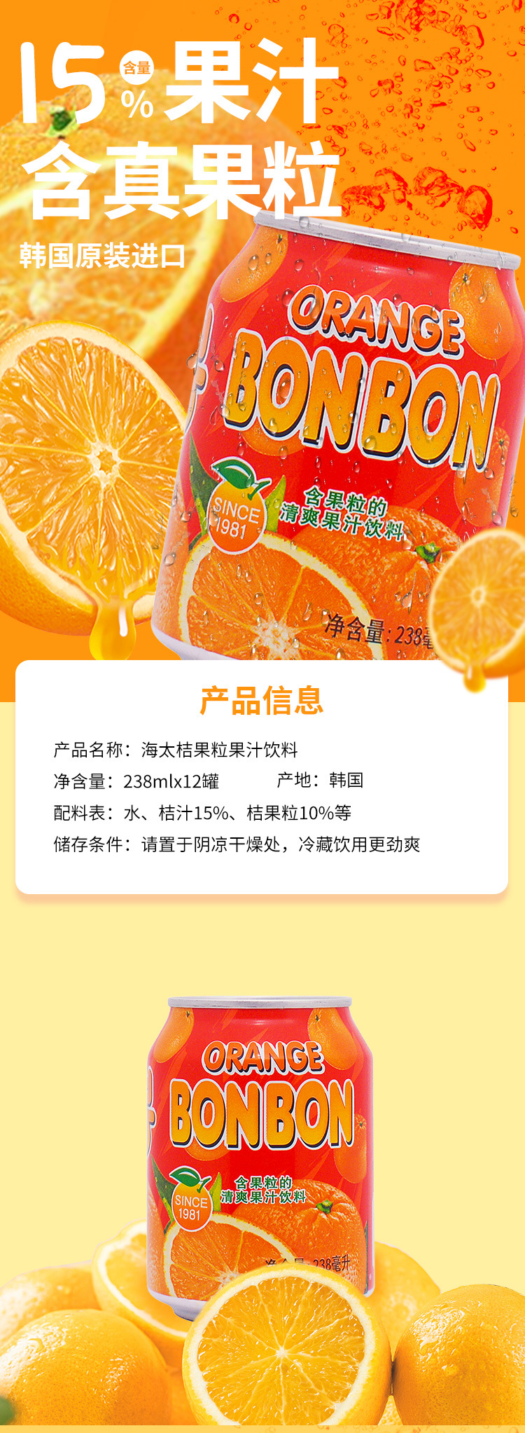 Orange flavor 238ml*12 cans