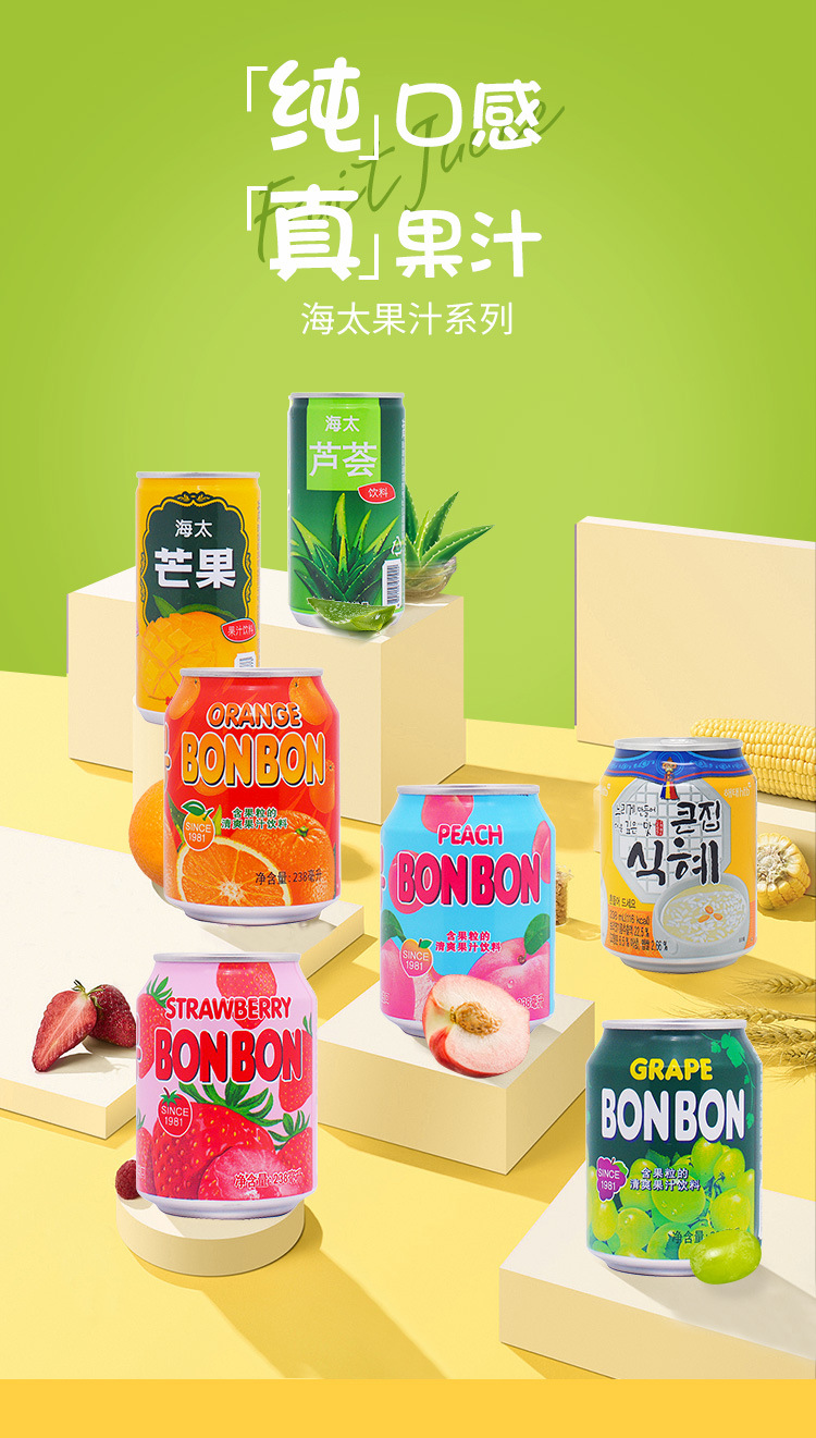 Free Shipping South Korea Original Imported Haitai Beverage Grape Peach Orange Strawberry Mango Mixed Fruit Juice Large Quantity Inquiry