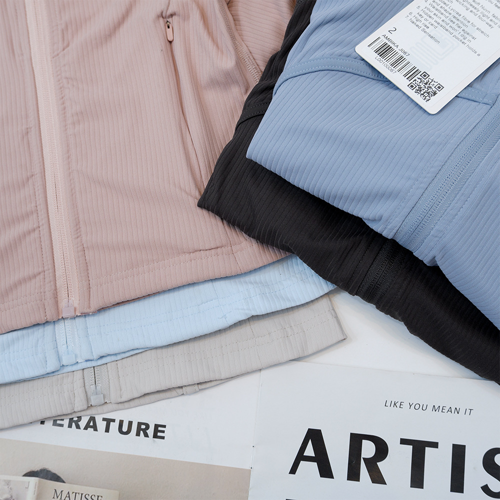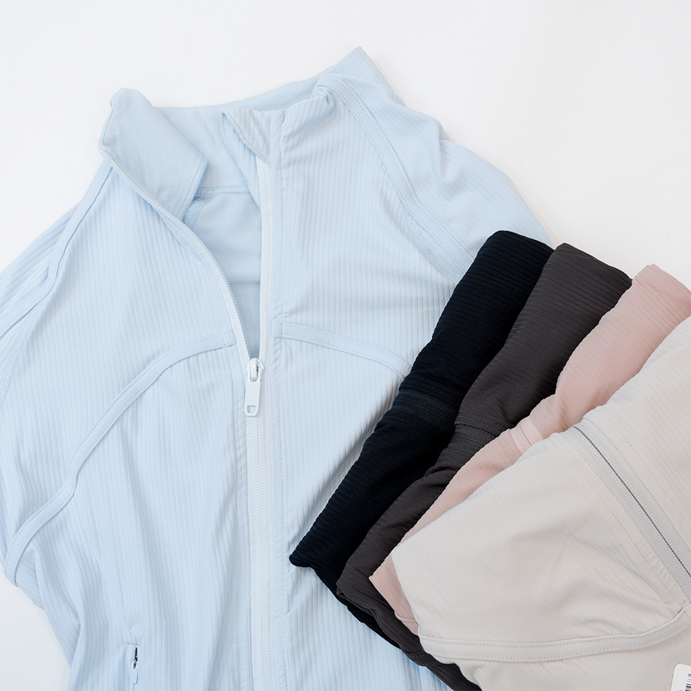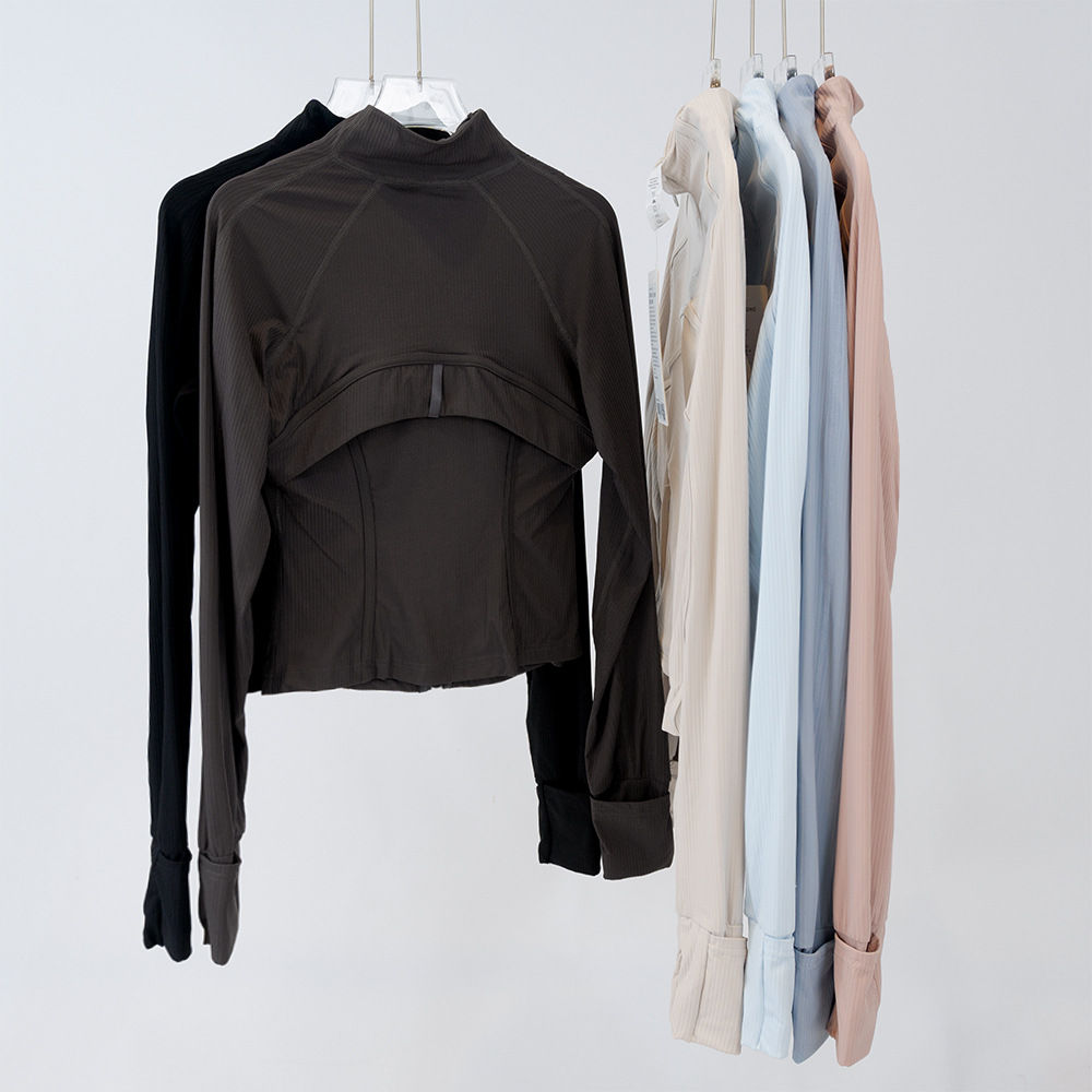 短款罗纹夹克瑜伽显瘦女士运动春夏透气速干运动外套紧身健身