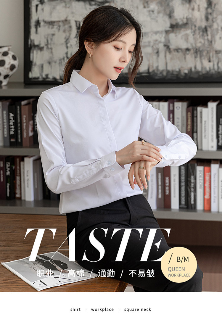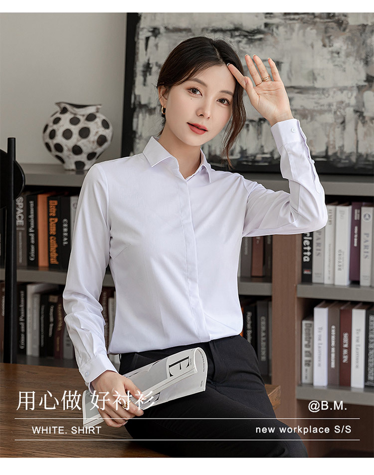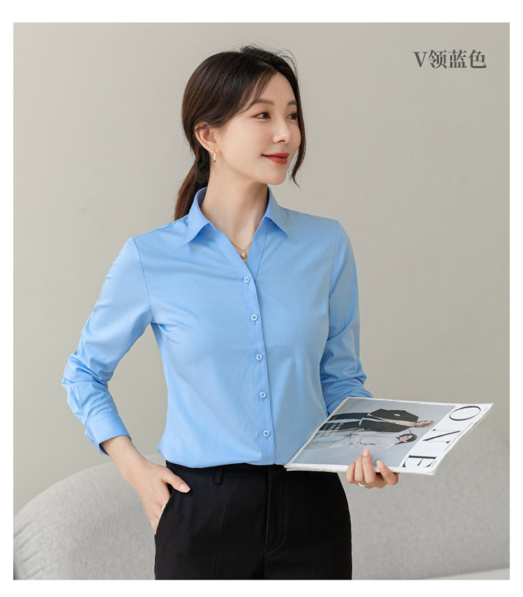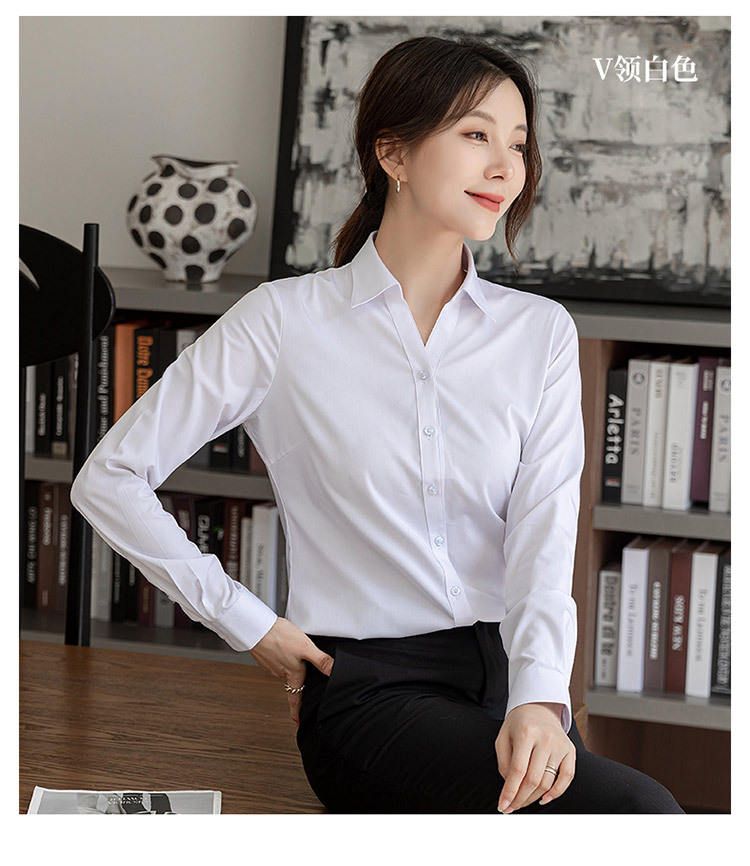 60% cotton white shirt women's long sleeve spring and autumn anti-wrinkle Korean style shirt formal wear professional work clothes temperament V-neck