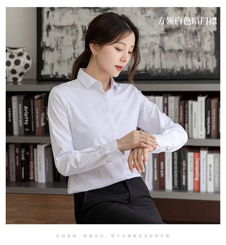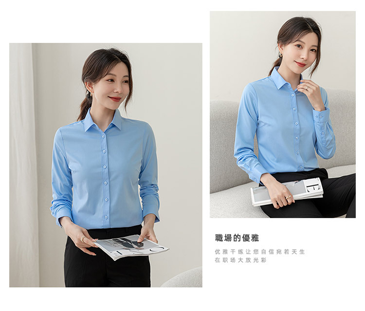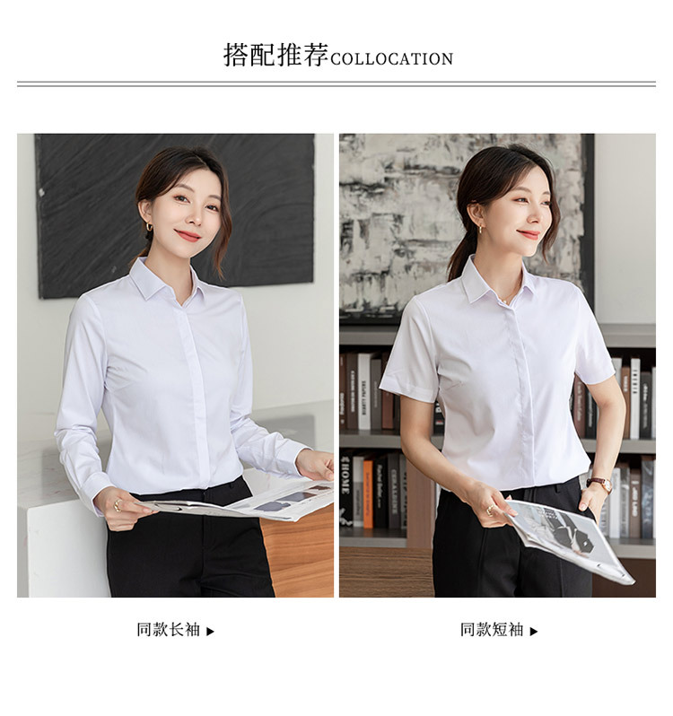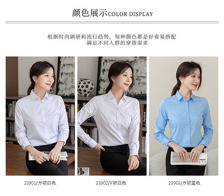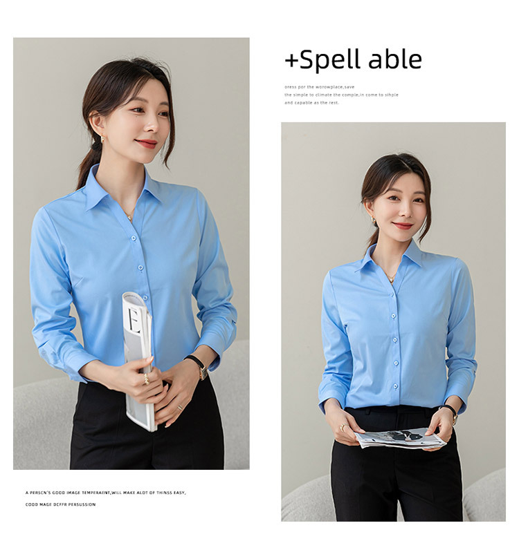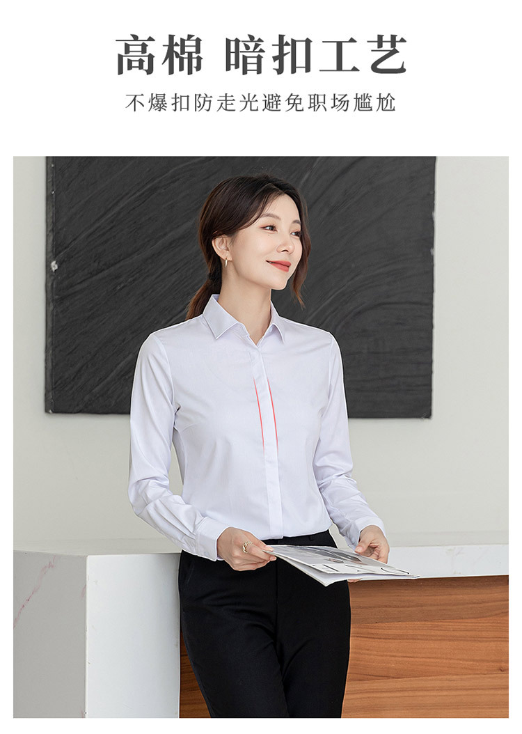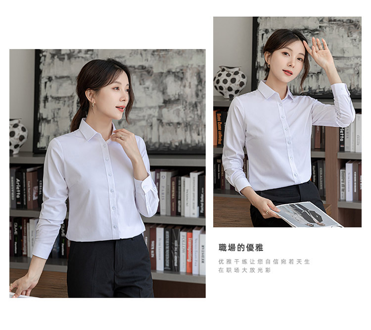 60%棉白衬衫女长袖春秋抗皱韩版衬衣正装职业工装工作服气质V领