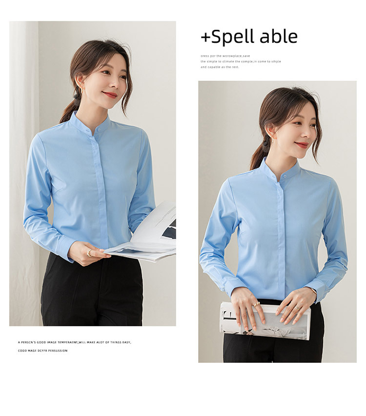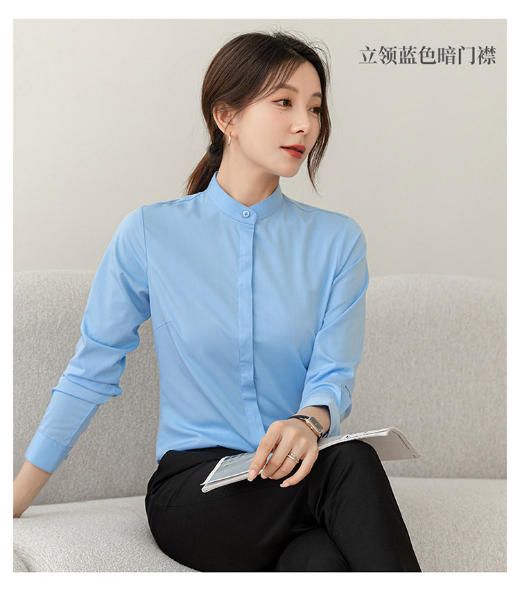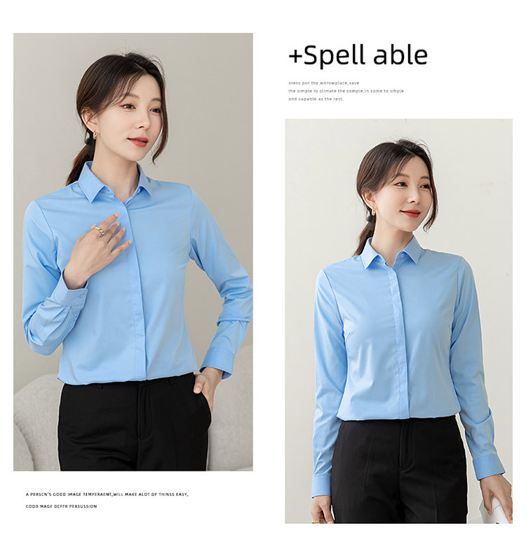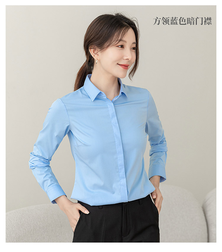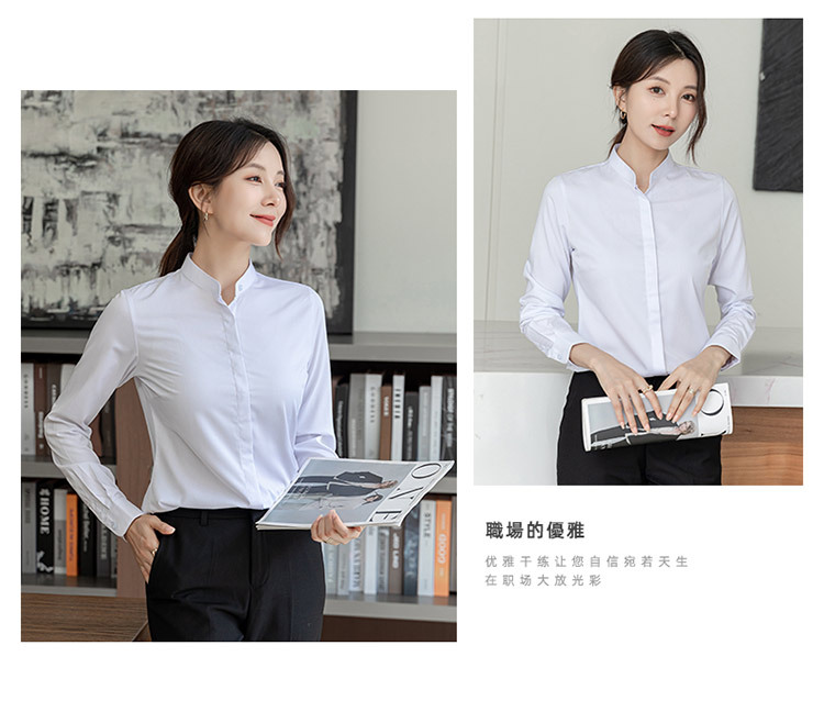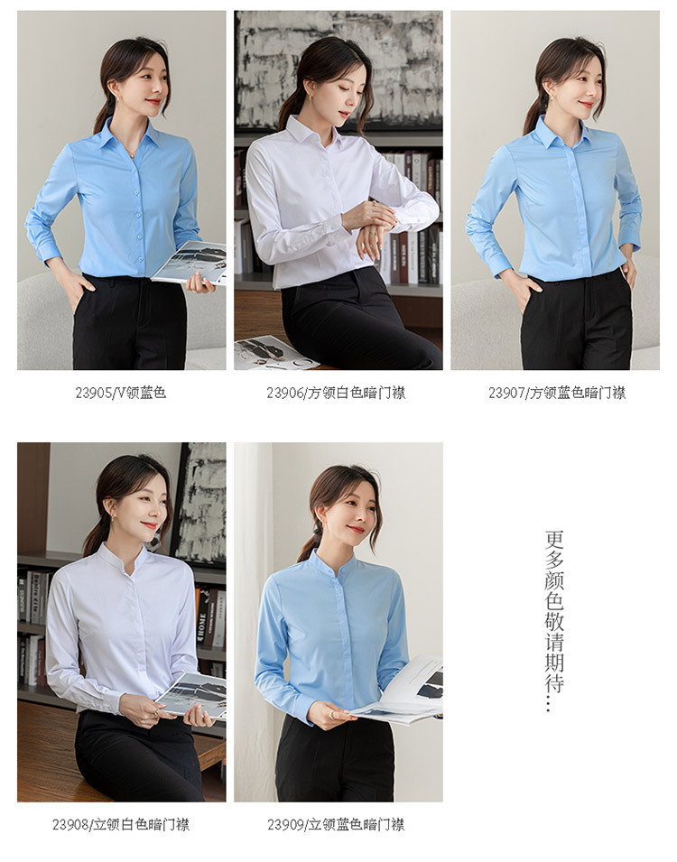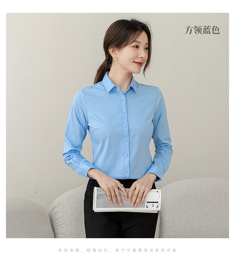 60%棉白衬衫女长袖春秋抗皱韩版衬衣正装职业工装工作服气质V领