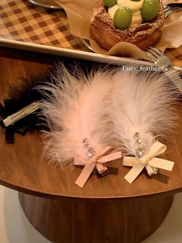 Super fairy temperament bow feather hairpin female high sense duckbill clip hair accessories headdress hairpin 2023 New