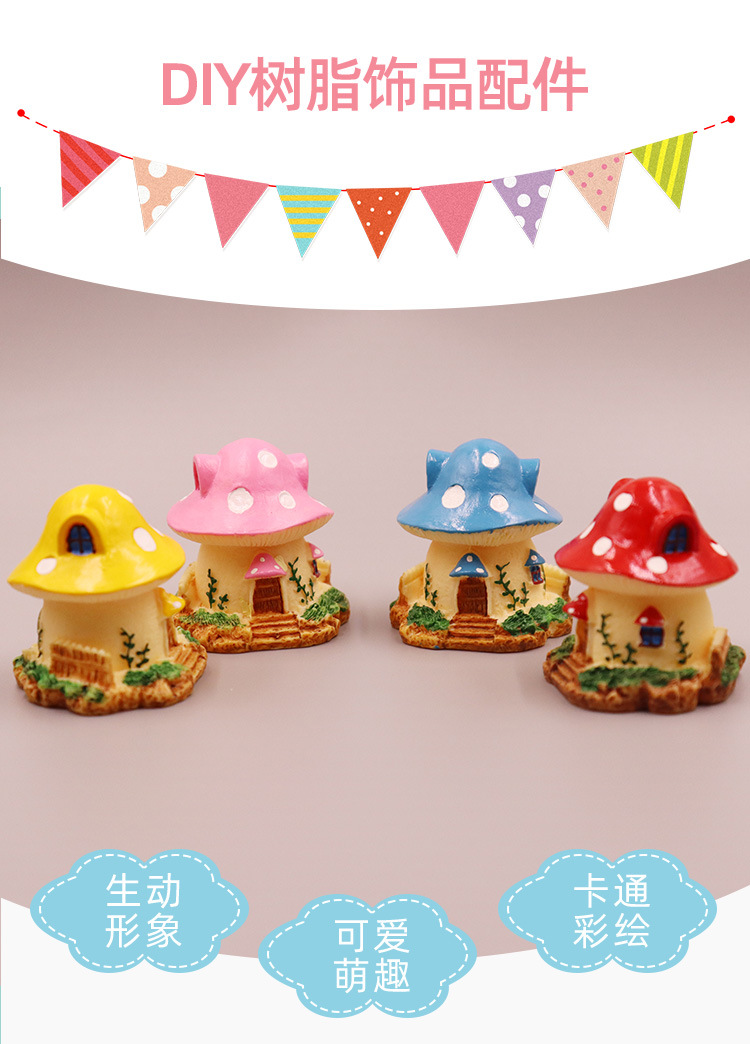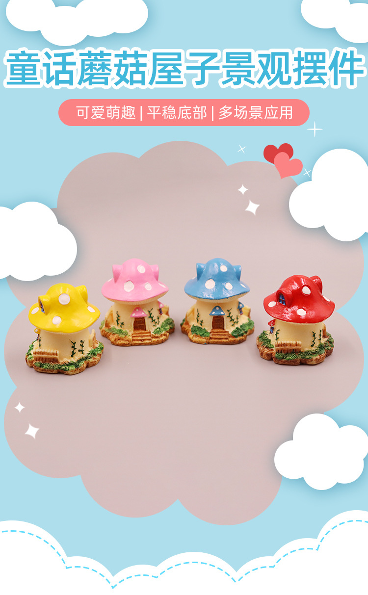 厂家直销童话蘑菇屋子微景观桌面装饰品配件创意树脂摆件