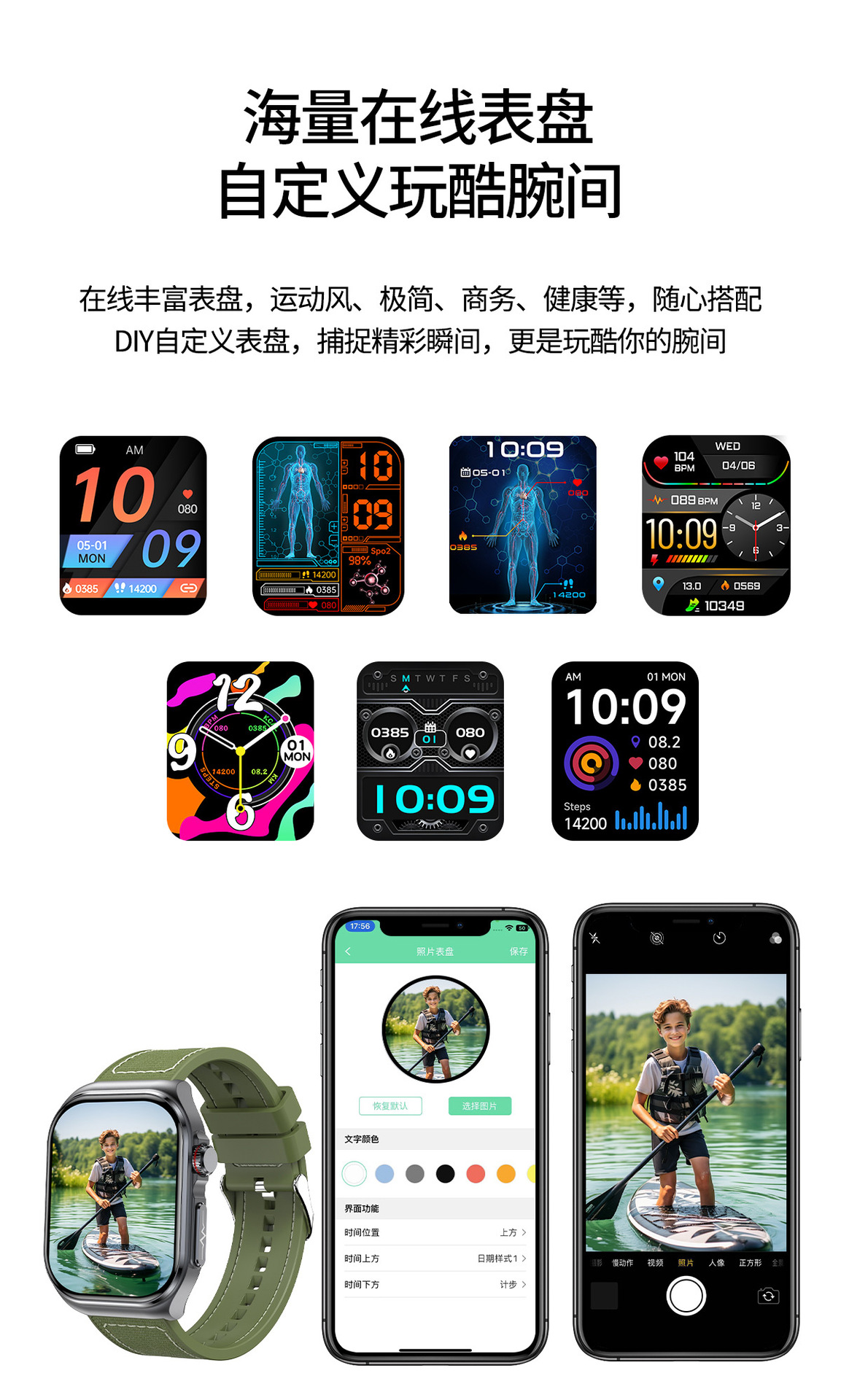 新款跨境ET585智能手表蓝牙通话微体检心电体脂五脏检测多运动