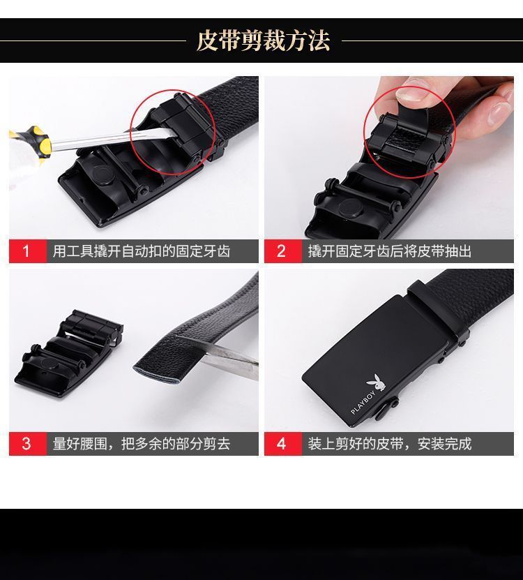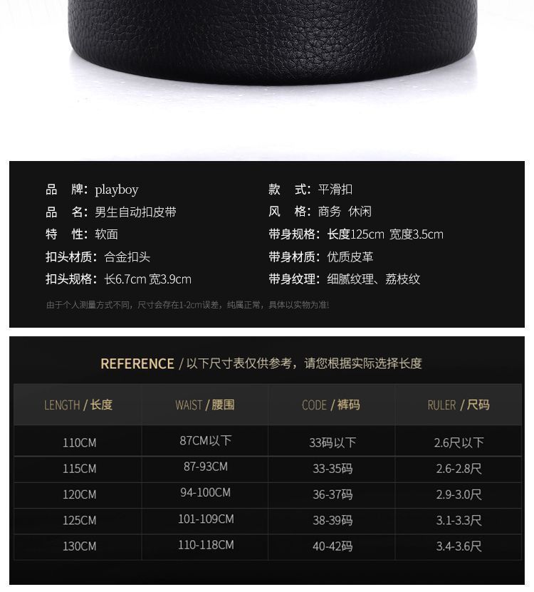 Playboy Belt Men's Soft Leather All-match Automatic Buckle Belt Men's Business Casual Fashionable Durable Belt
