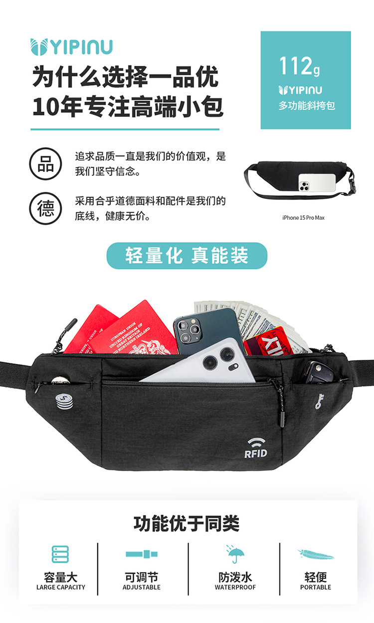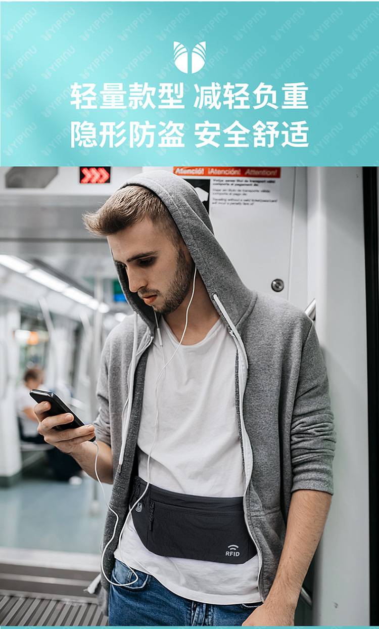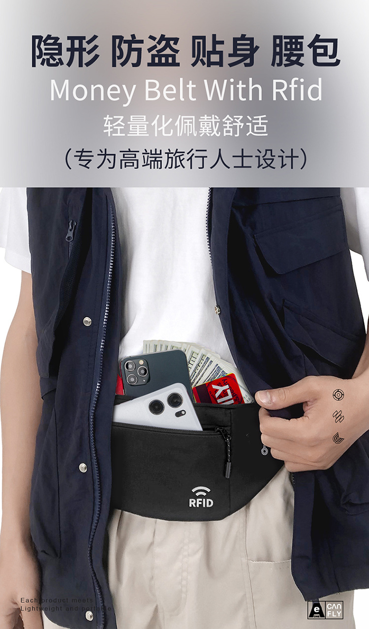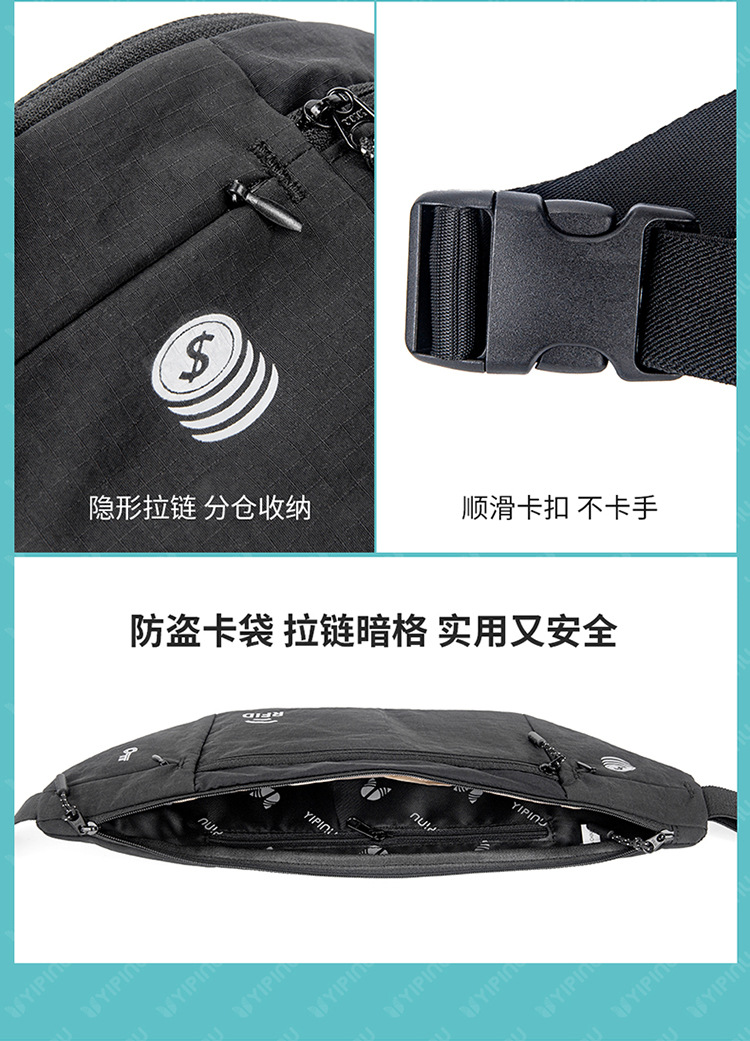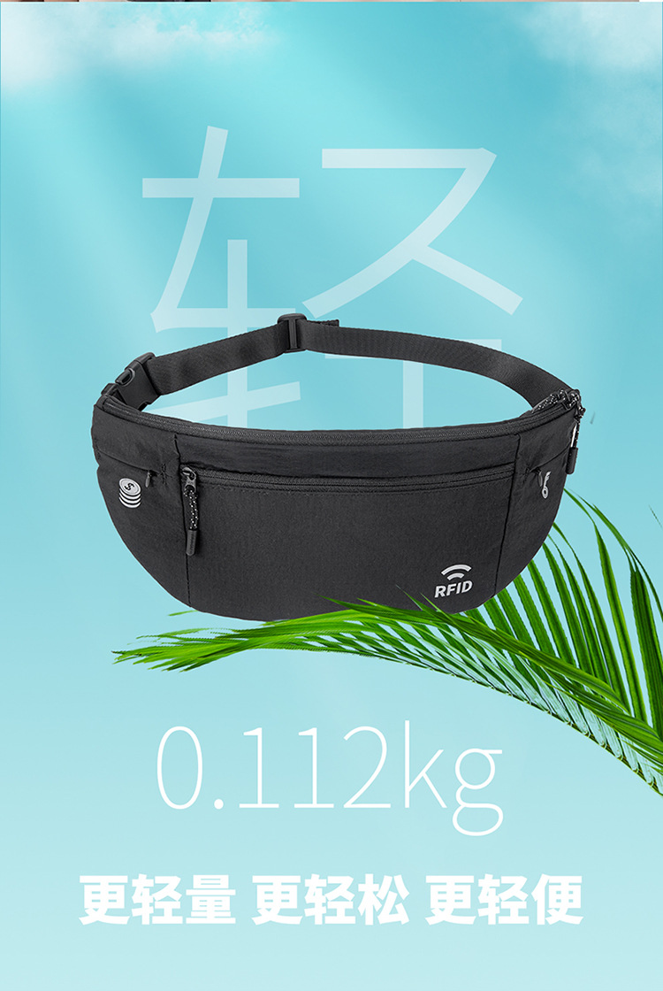 维强 新款跨境旅行RFID防盗腰包户外运动跑步防水尼龙贴身轻薄