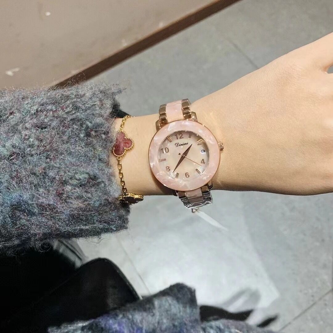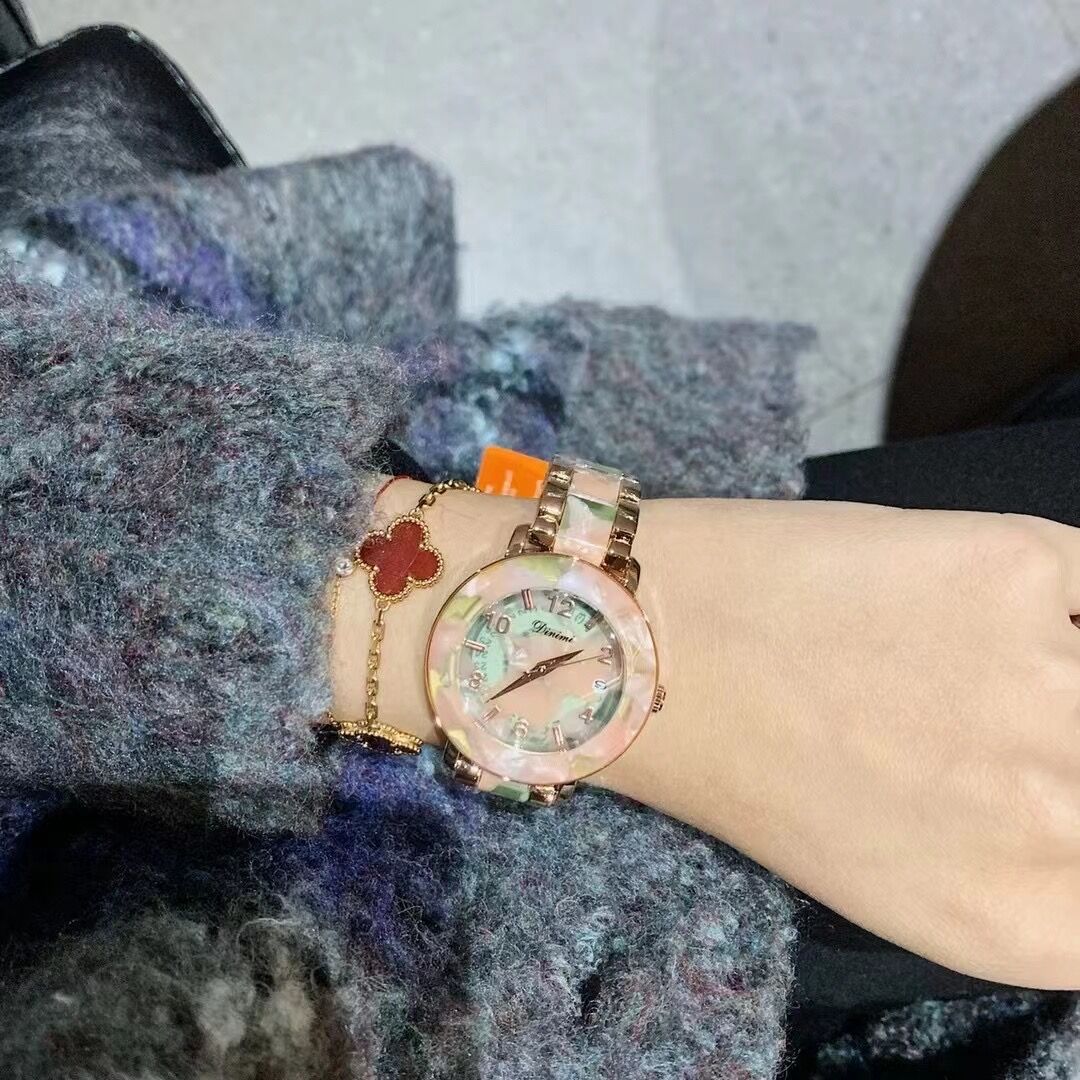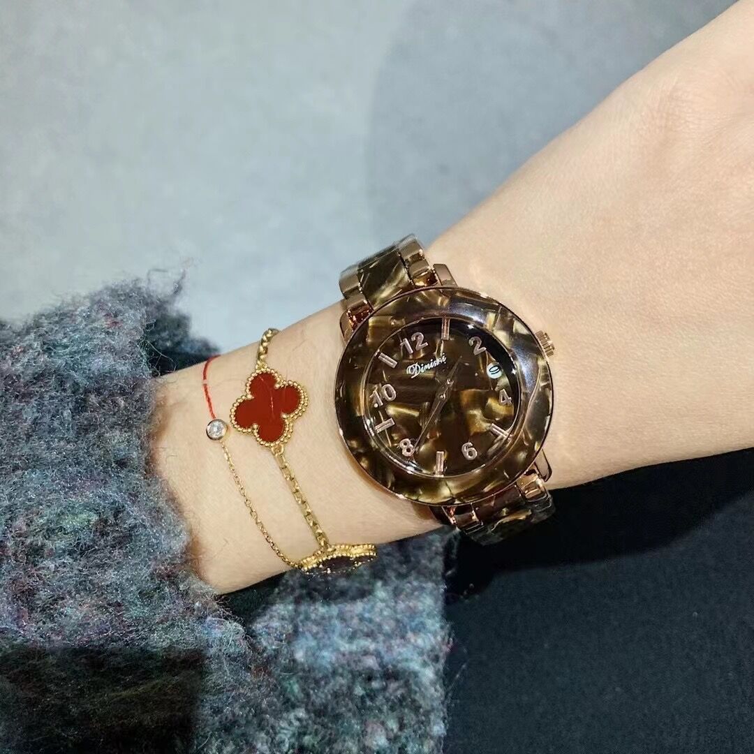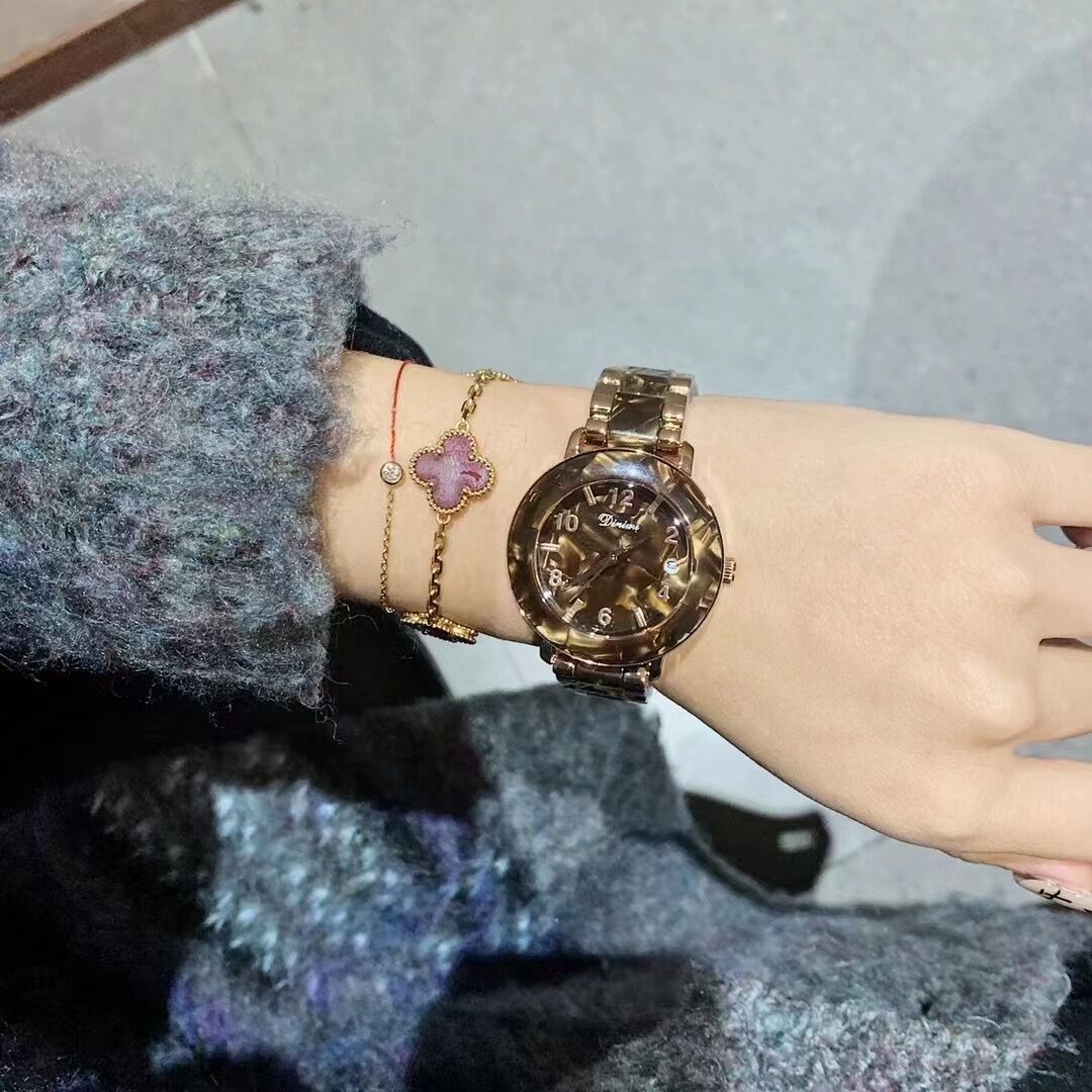蒂米妮手表女士个性眼镜胶碎花复古潮流时尚高级感女表防水新款
