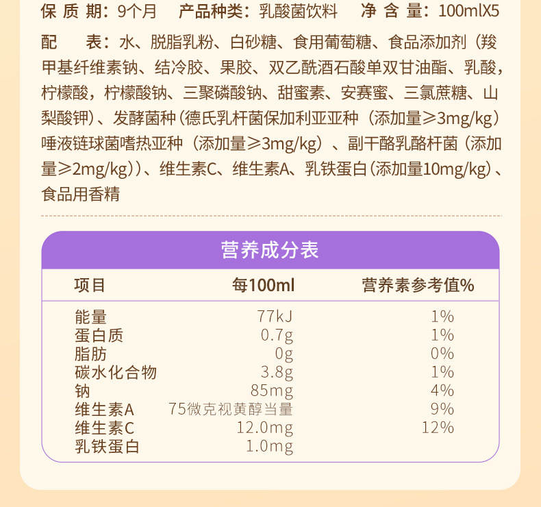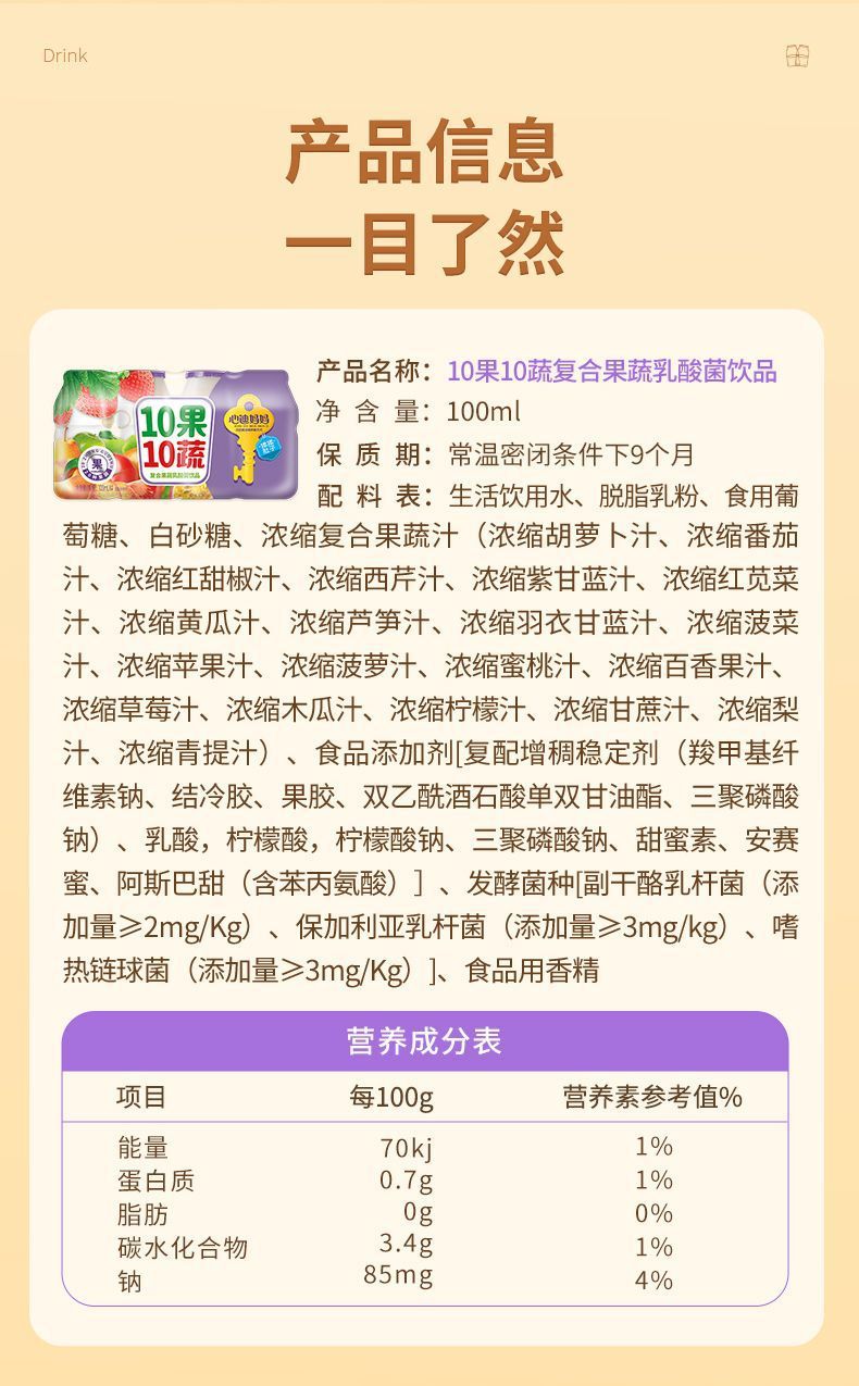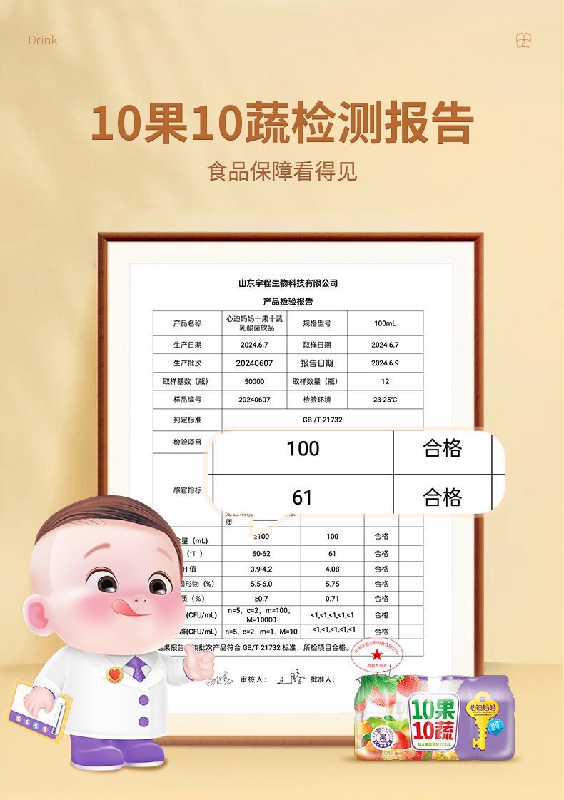 心迪妈妈10果10蔬乳酸菌乳铁蛋白饮料植物乳杆菌儿童饮品果汁