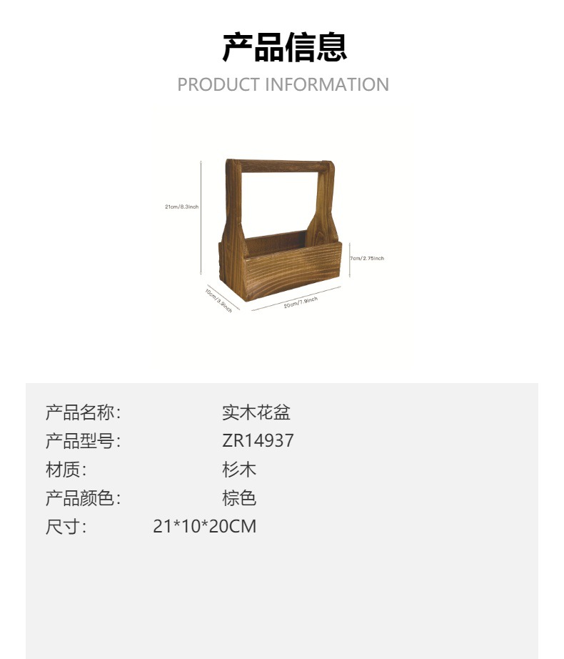 跨境新品矩形木花盆悬挂多肉花盆手工花园花盆家庭装饰室内和室外
