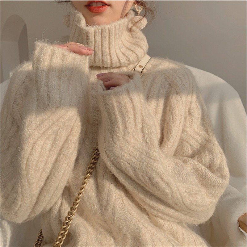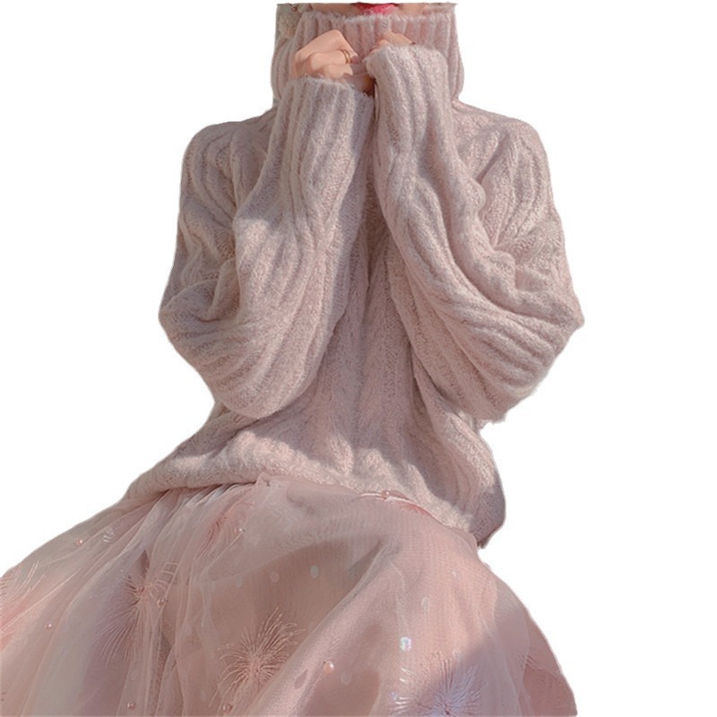Turtleneck Sweater for Women, Slim Fit, Autumn and Winter, Lazy Style, Thickened, Mid-Length Knitwear, High-End Trendy Long-Sleeved Thick Style