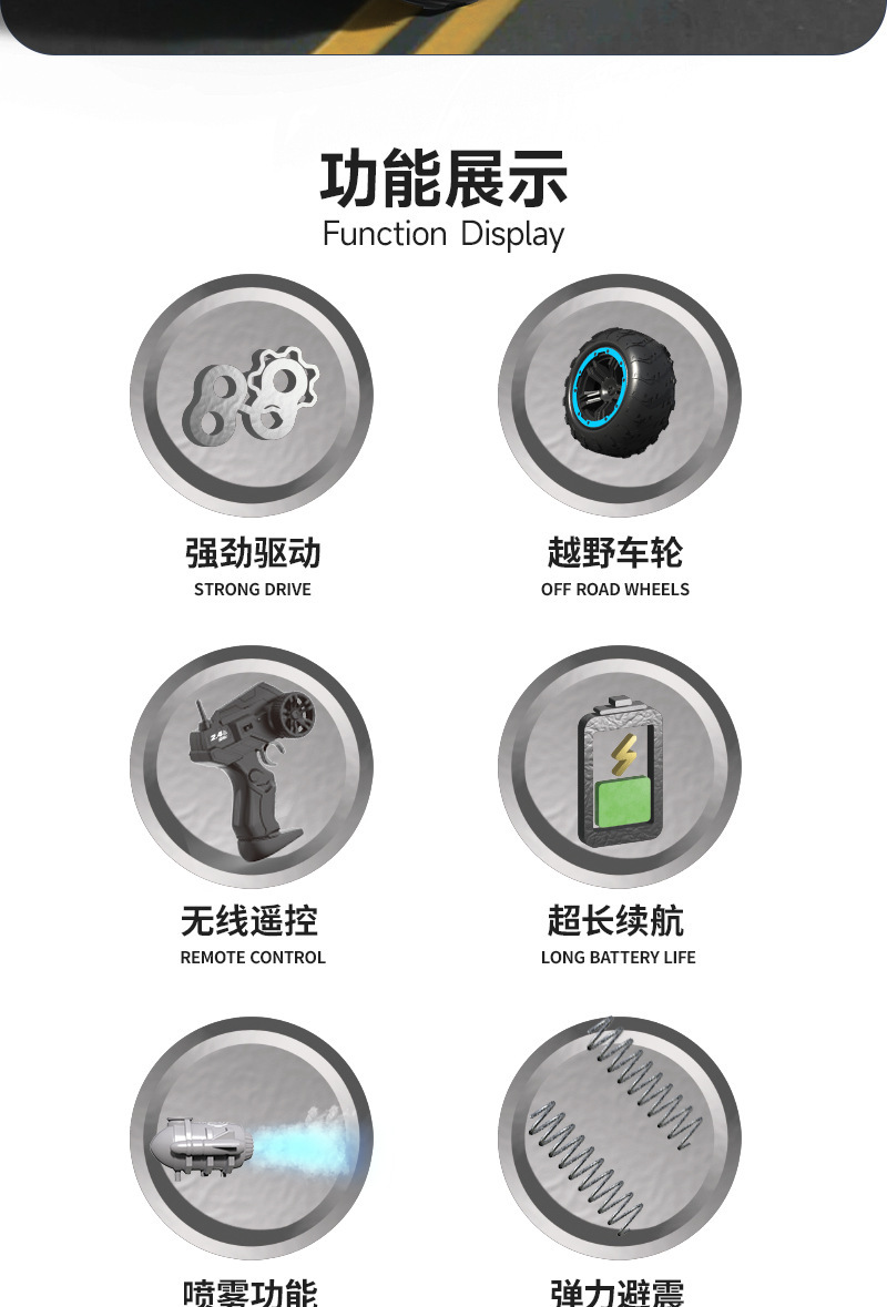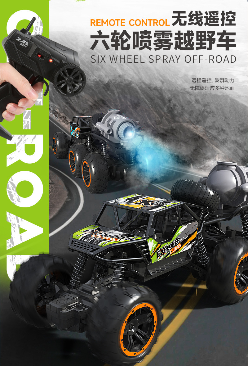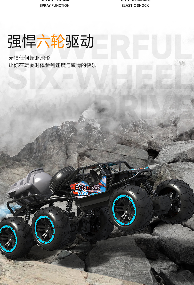 跨境大号合金攀爬越野车充电动遥控车儿童玩具车男孩六轮喷雾赛车