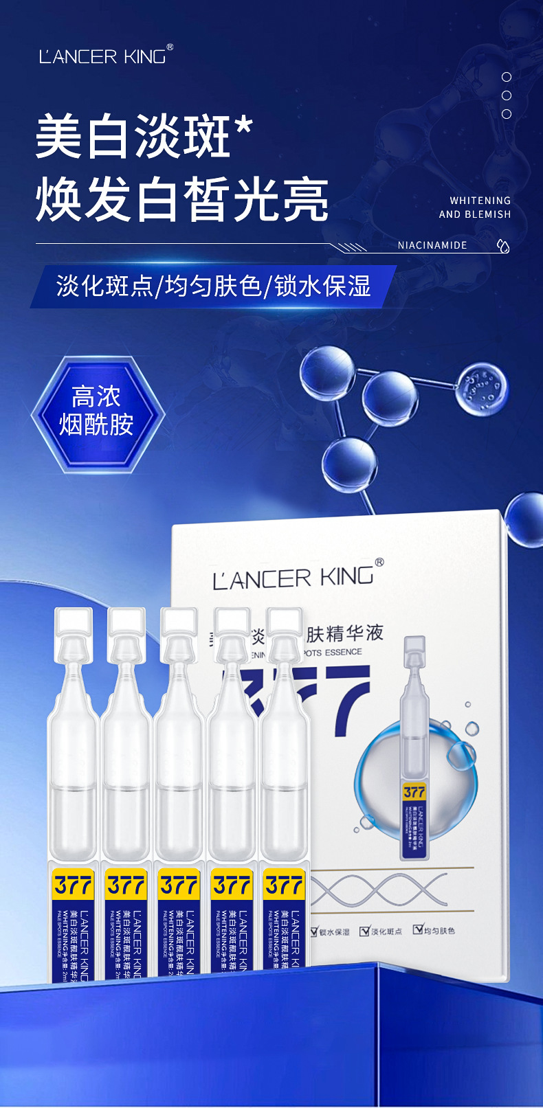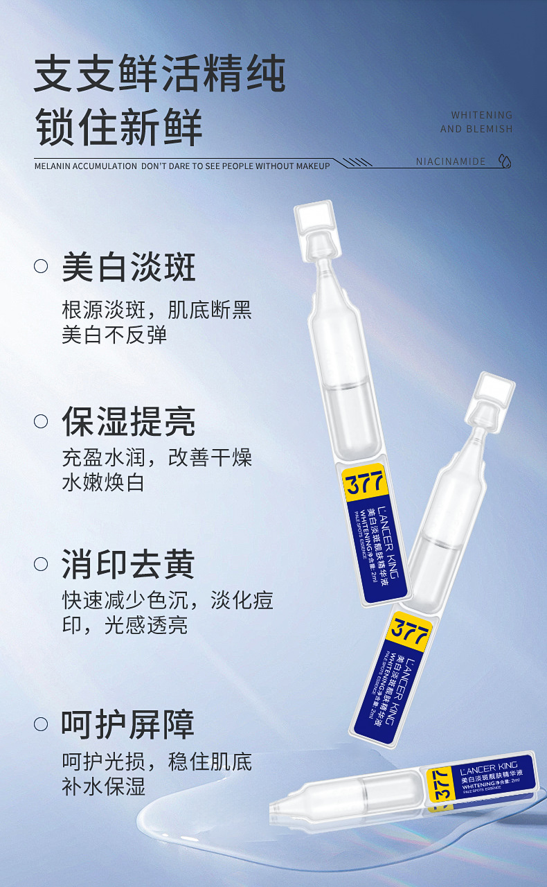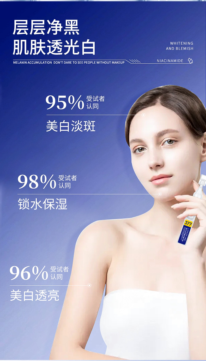 377美白淡斑靓肤次抛精华液烟酰胺原液面部精华玻尿酸美白精华液