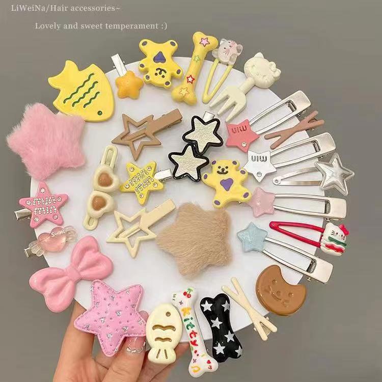 45 Pieces of Sweet and Cute Girl Cartoon Cat Hairpins with Bangs and Side Clips, Sweet and Cool Star Bb Hair Accessories, Versatile Side Clips