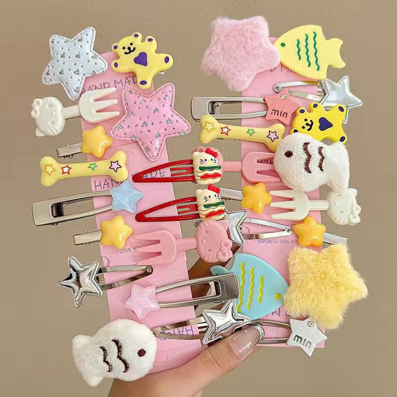15个装B款蓝色鱼款甜酷少女发夹(袋装)