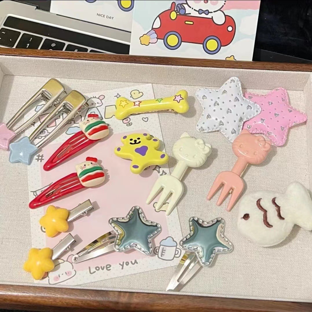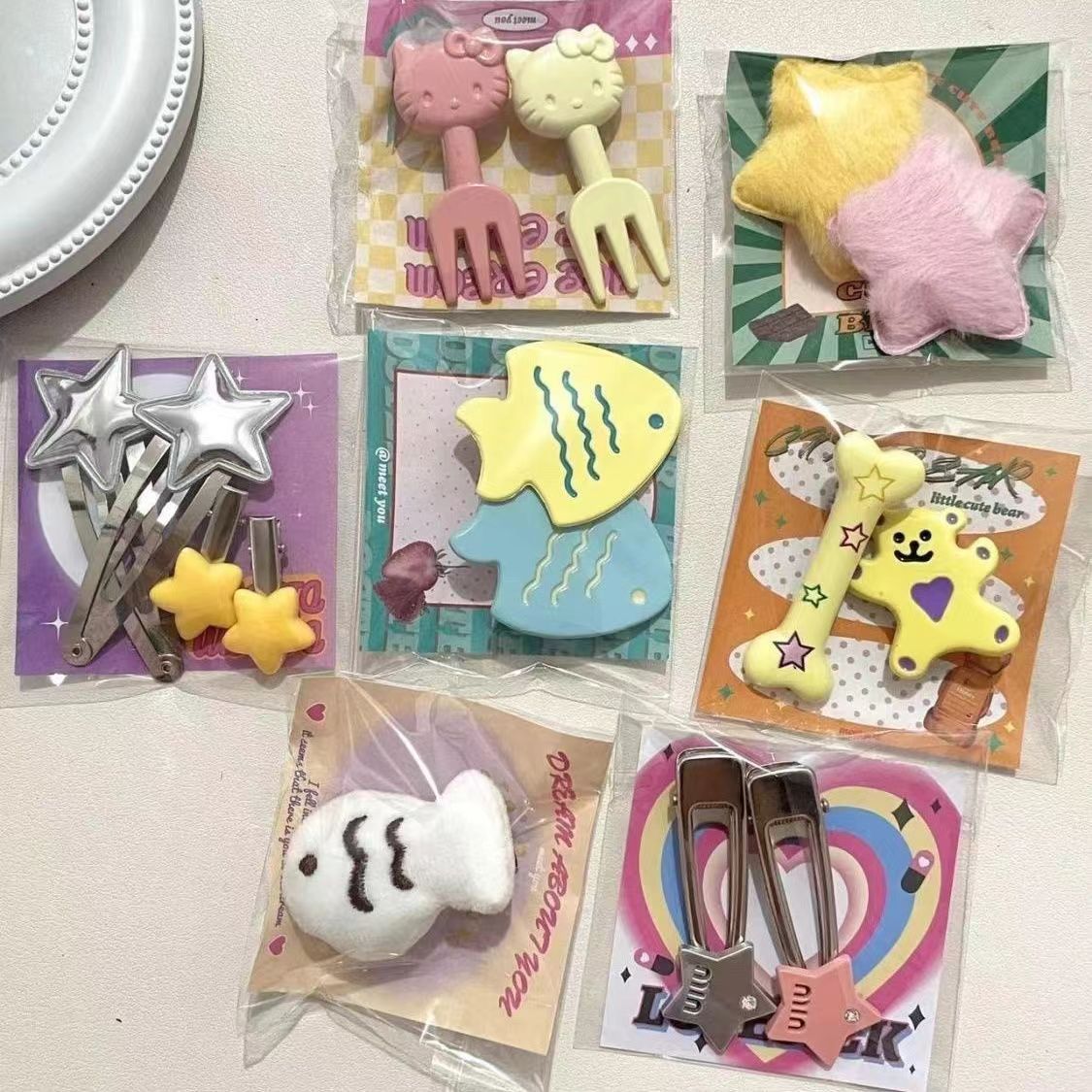 45个装甜美可爱少女卡通猫发夹刘海侧边夹甜酷星星BB发饰百搭侧边