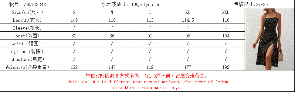 洋气裙子女2026夏新款跨境外贸欧美亚马逊性感吊带开衩碎花连衣裙
