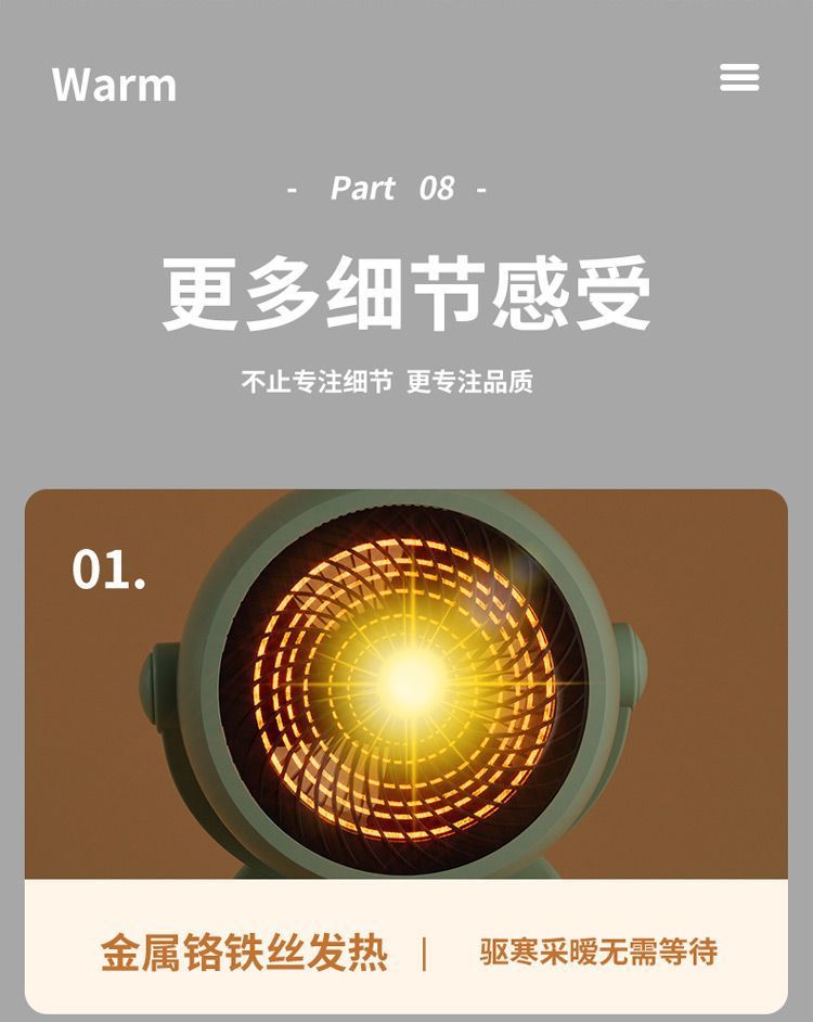 Small Sun Heater Household Energy Saving Electric Heating Fan Heater Bathroom Quick Heating Small Oven Cooling and Warming