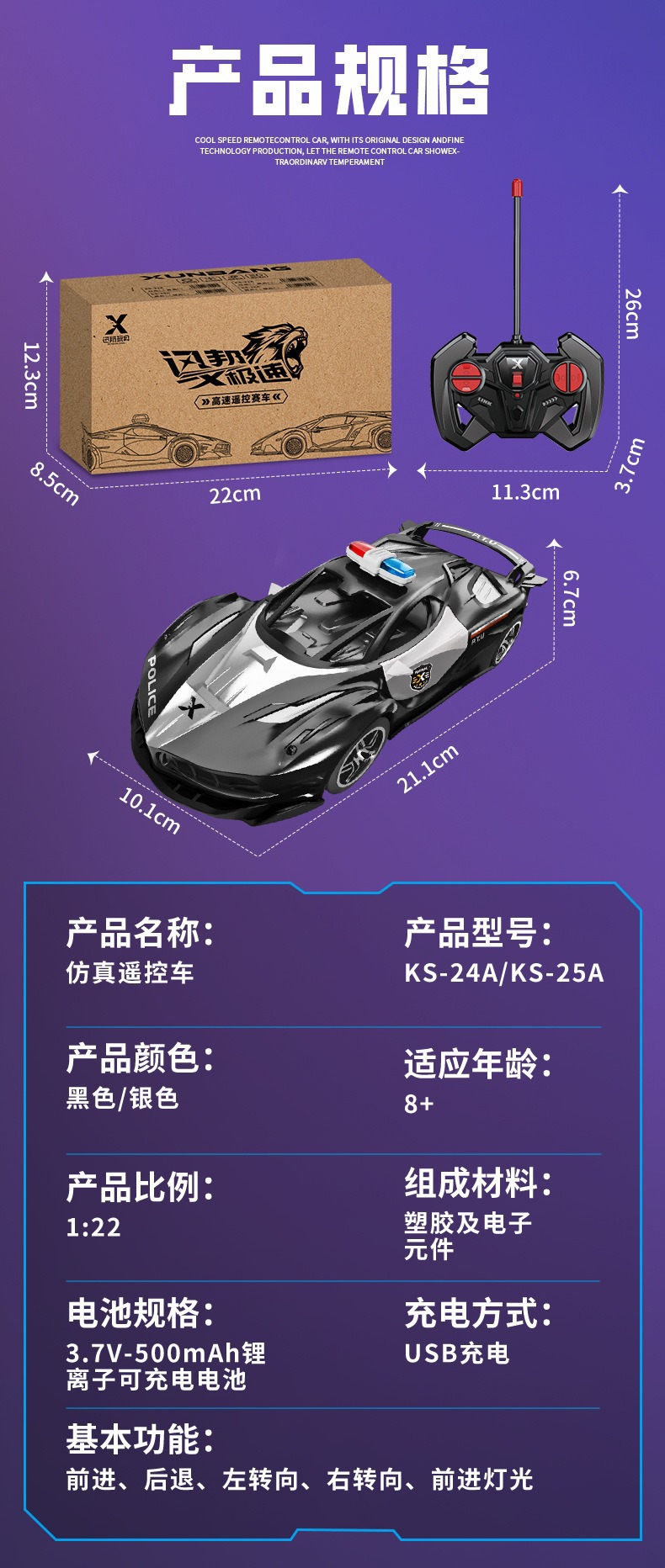 蓝银警车配色跑车【遥控rc车】