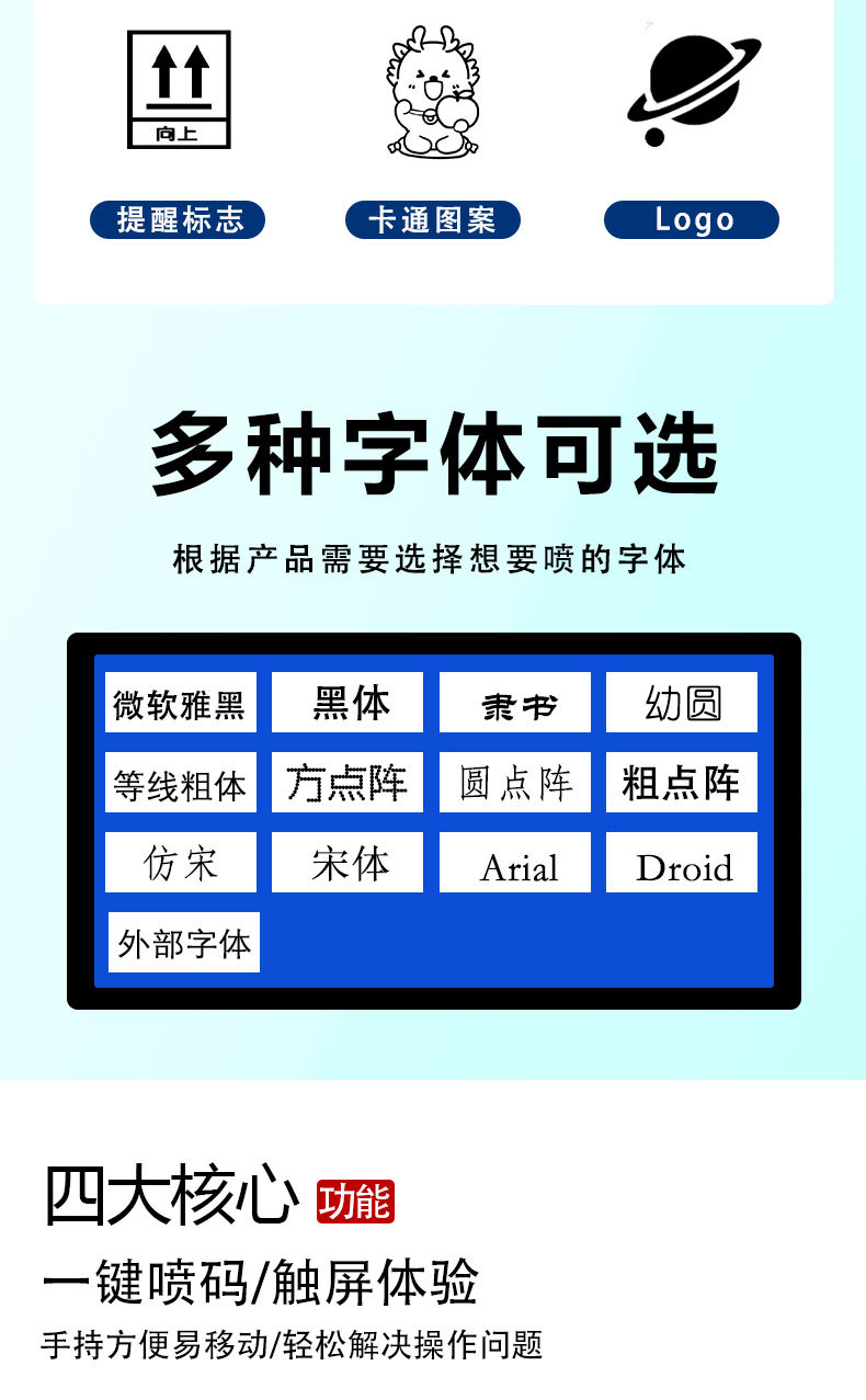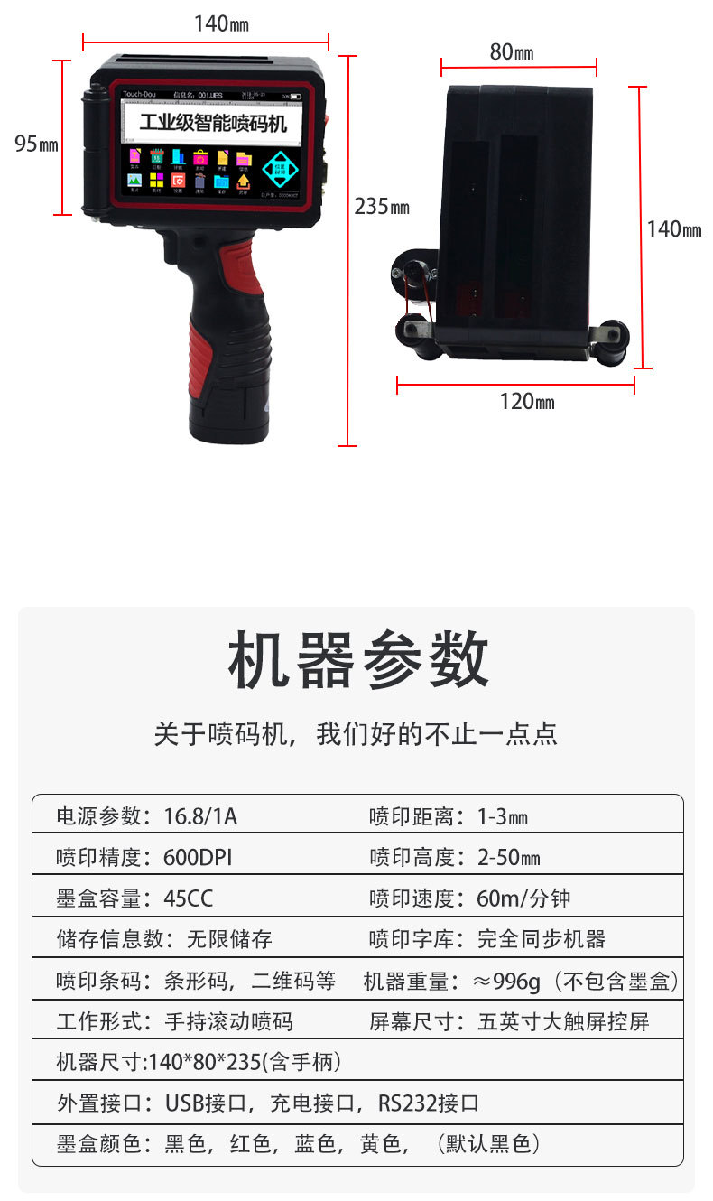 5cm高端电容屏喷码机+2个黑色高附着墨盒