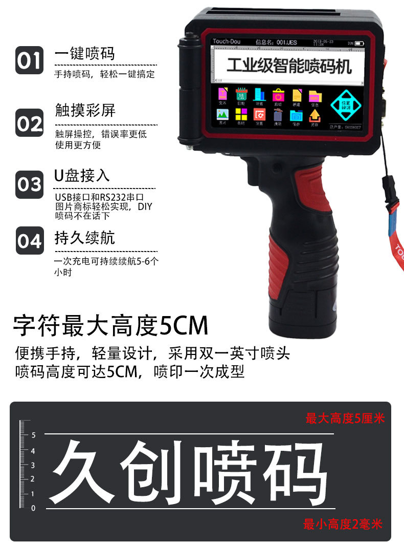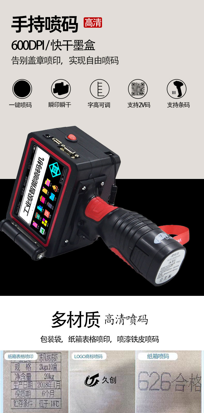 久创智能电容屏手持5cm大字符喷码机纸箱金属材质打生产日期