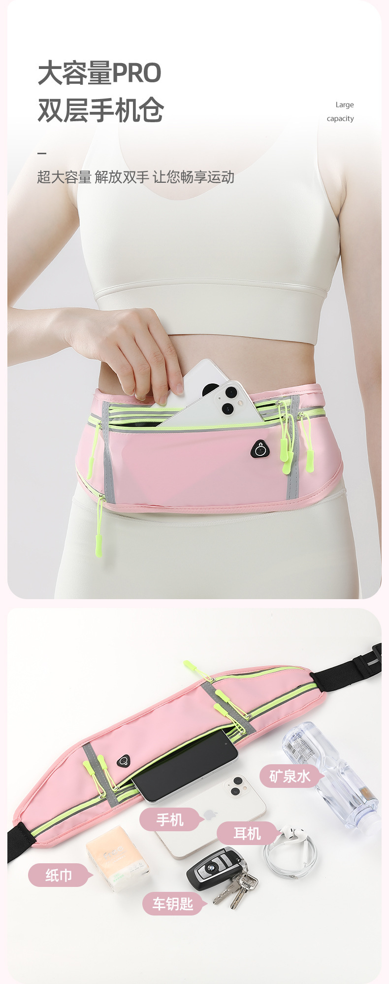 Dream pink [upgraded water kettle running waist bag 7.2inch ]