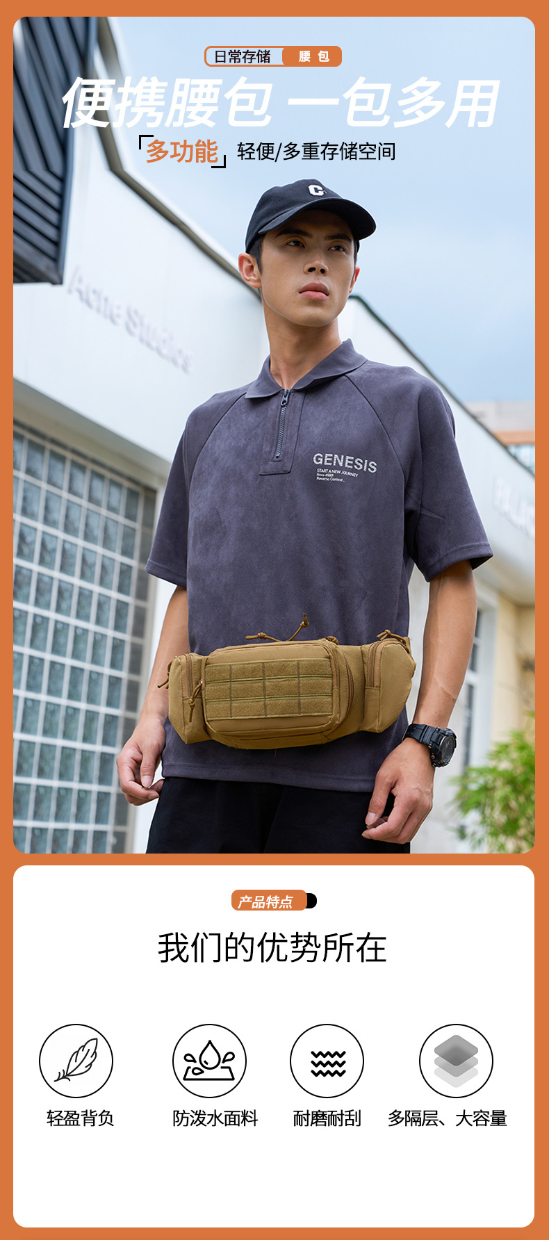 跨境户外多功能战术腰包男士隐形枪套耐磨耐用运动胸包收纳斜跨包
