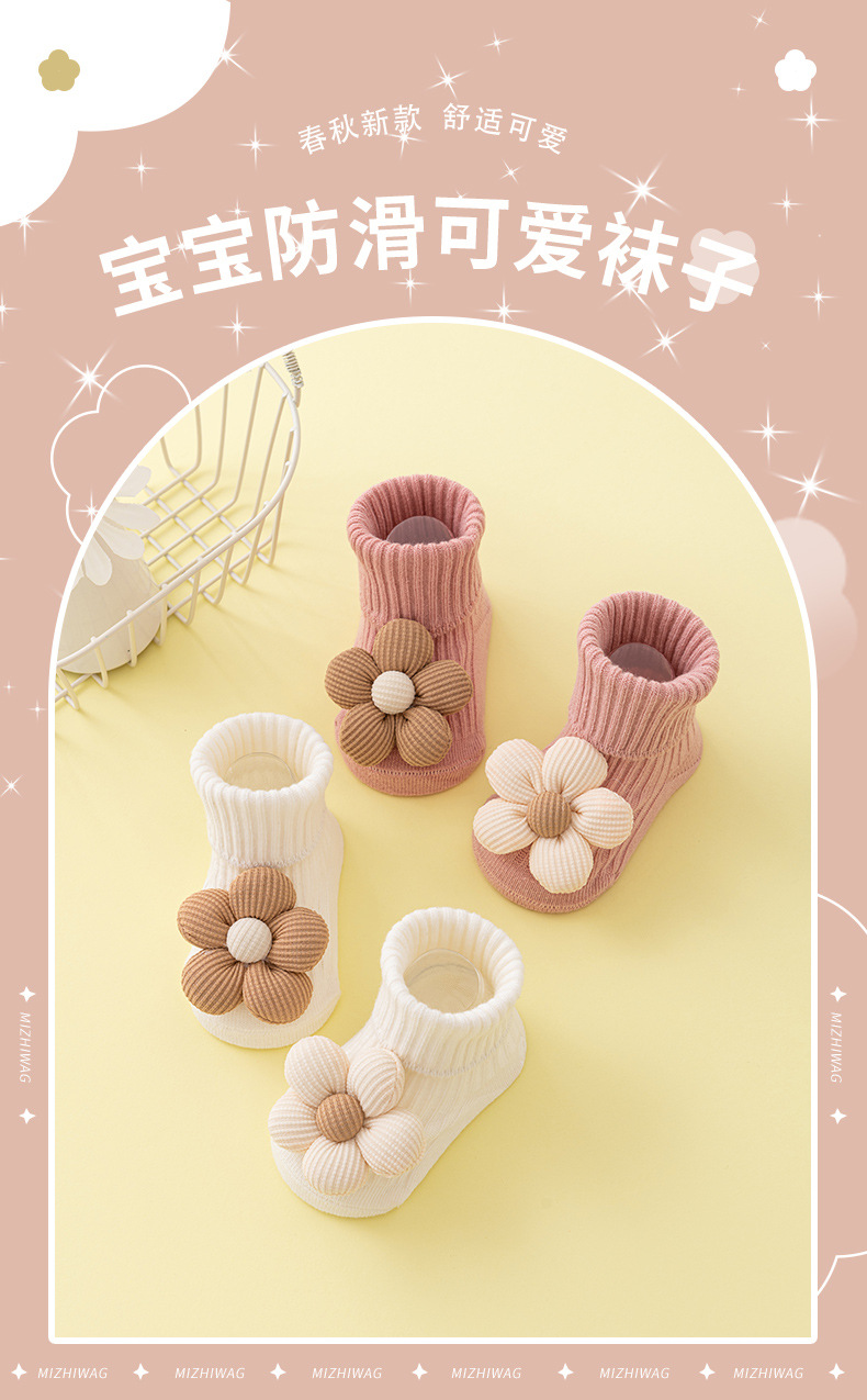 初新生婴儿0-1岁宝宝春秋款a类棉中筒点胶防滑学步袜子鞋跨境批发