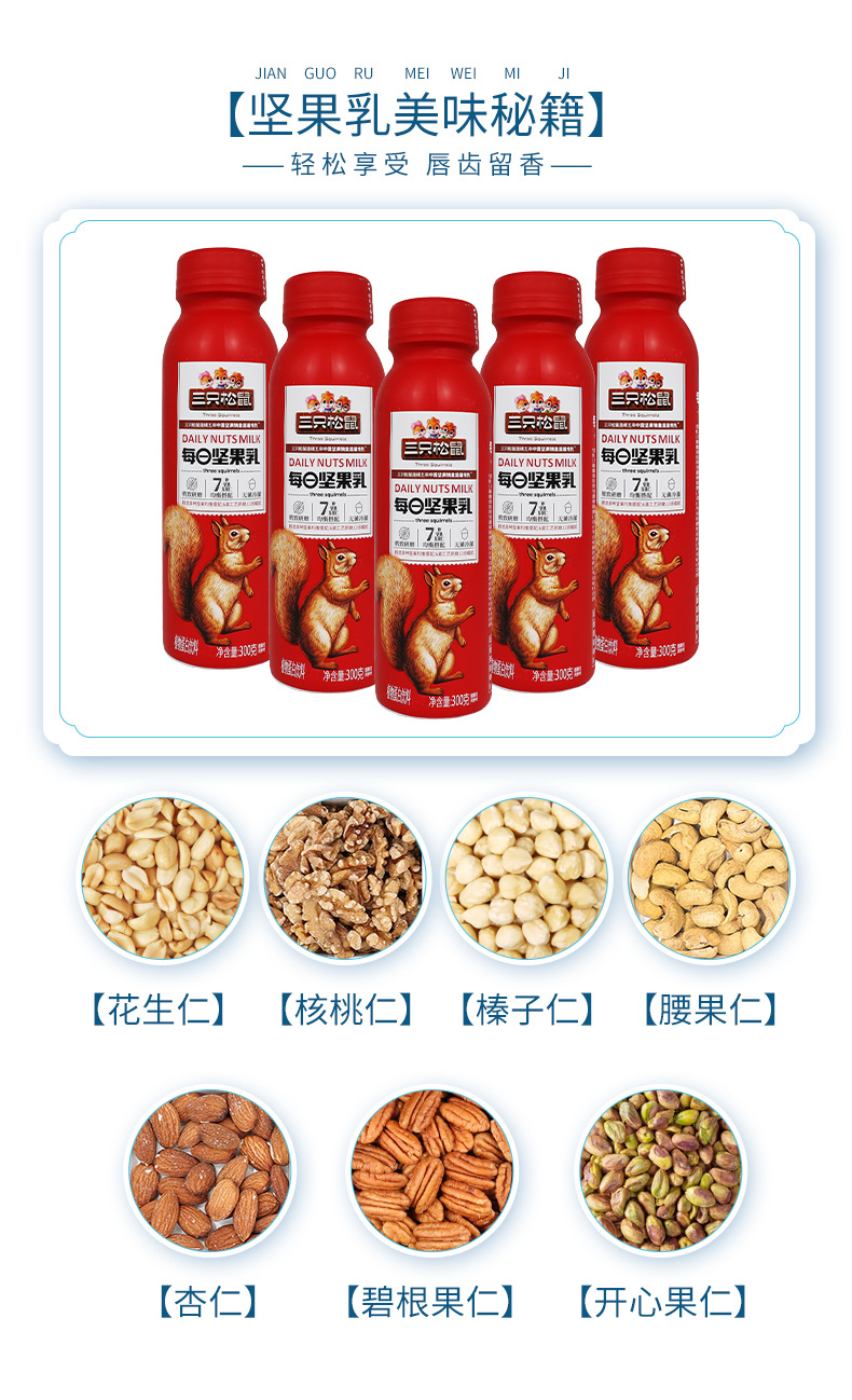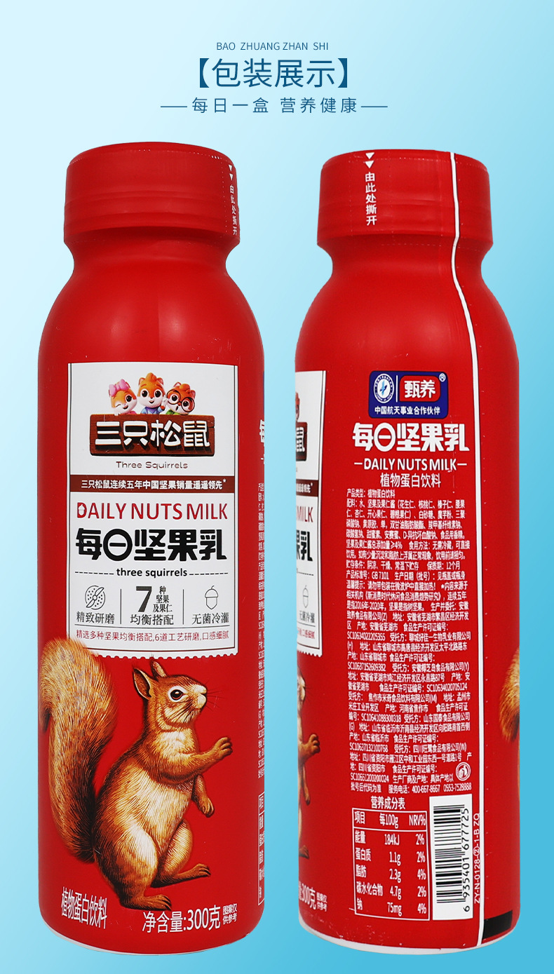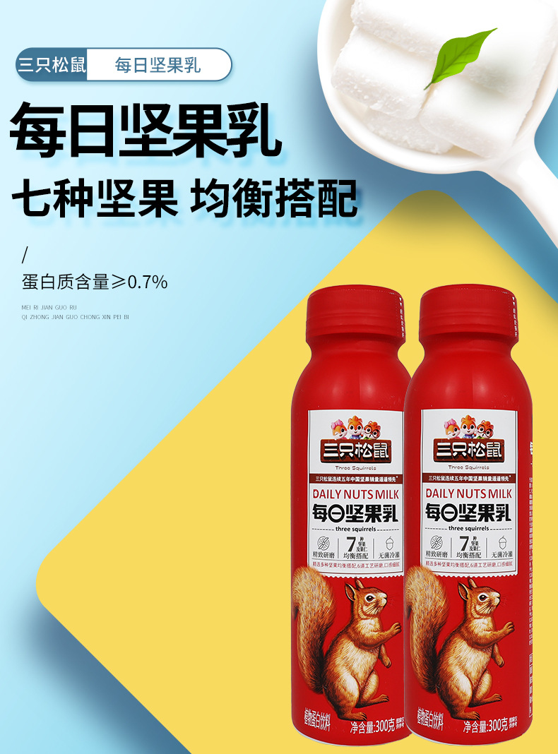 A generation of three squirrels daily nut milk 300g/bottle portable nut kernel balanced plant protein beverage