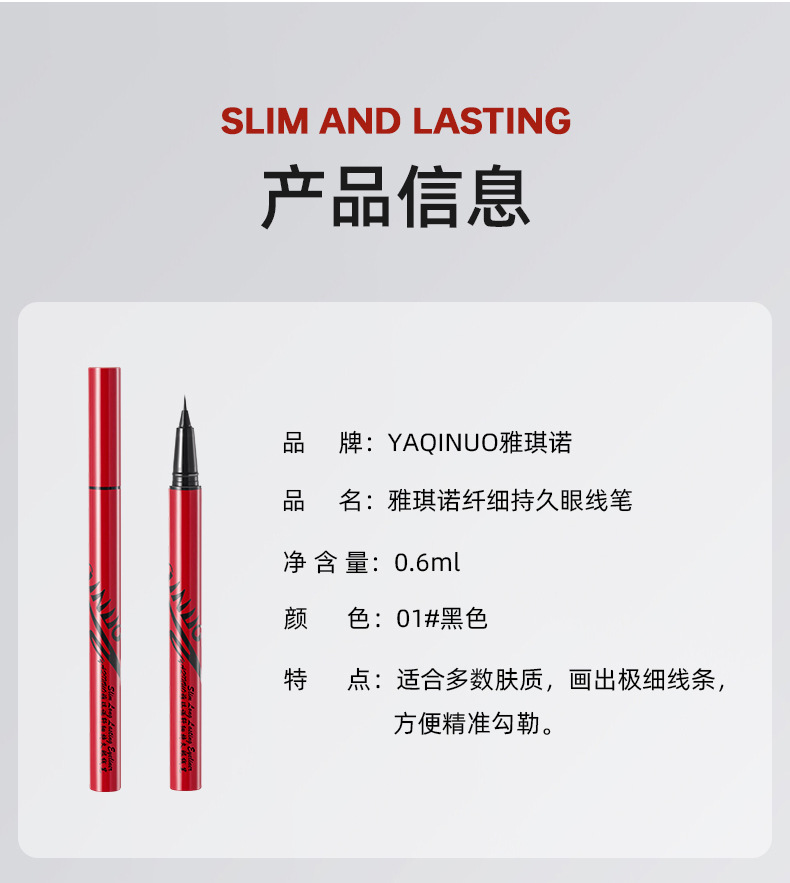 雅琪诺纤细持久眼线笔防水耐汗持久不易晕染眼线顺滑速干眼线液笔