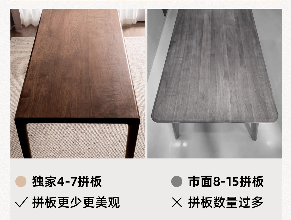 全实木,无贴皮,无假边, 整板厚度4.5cm