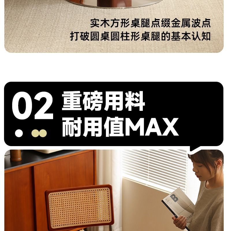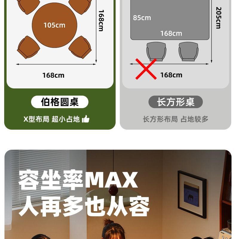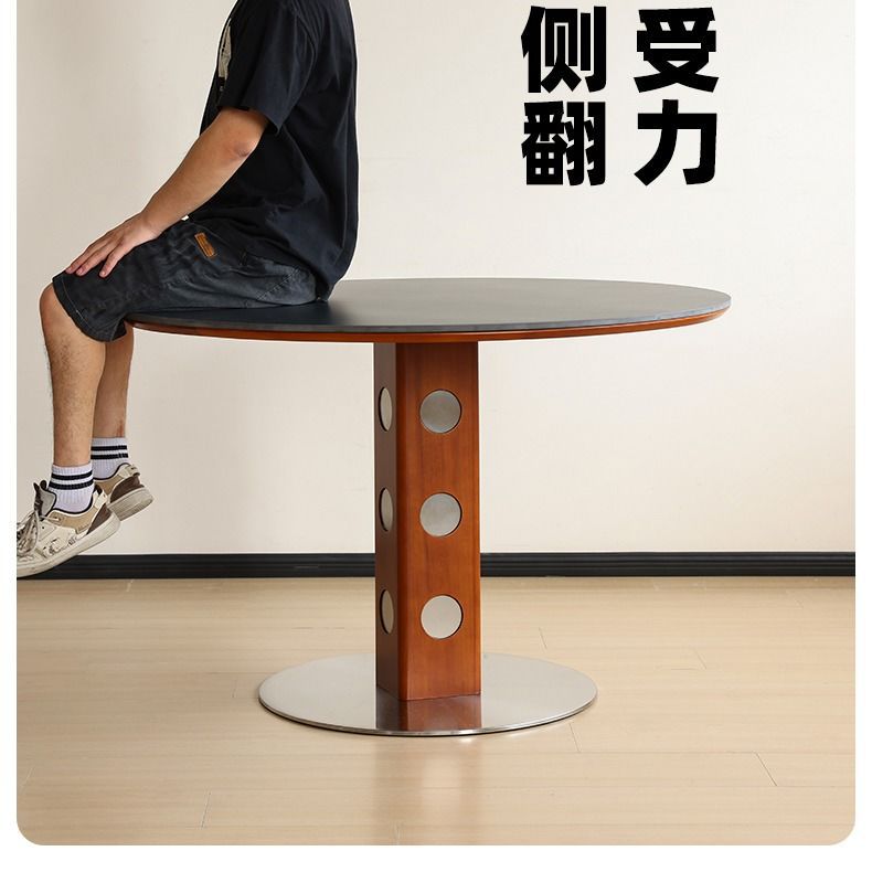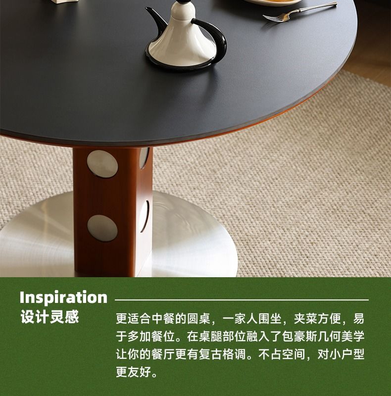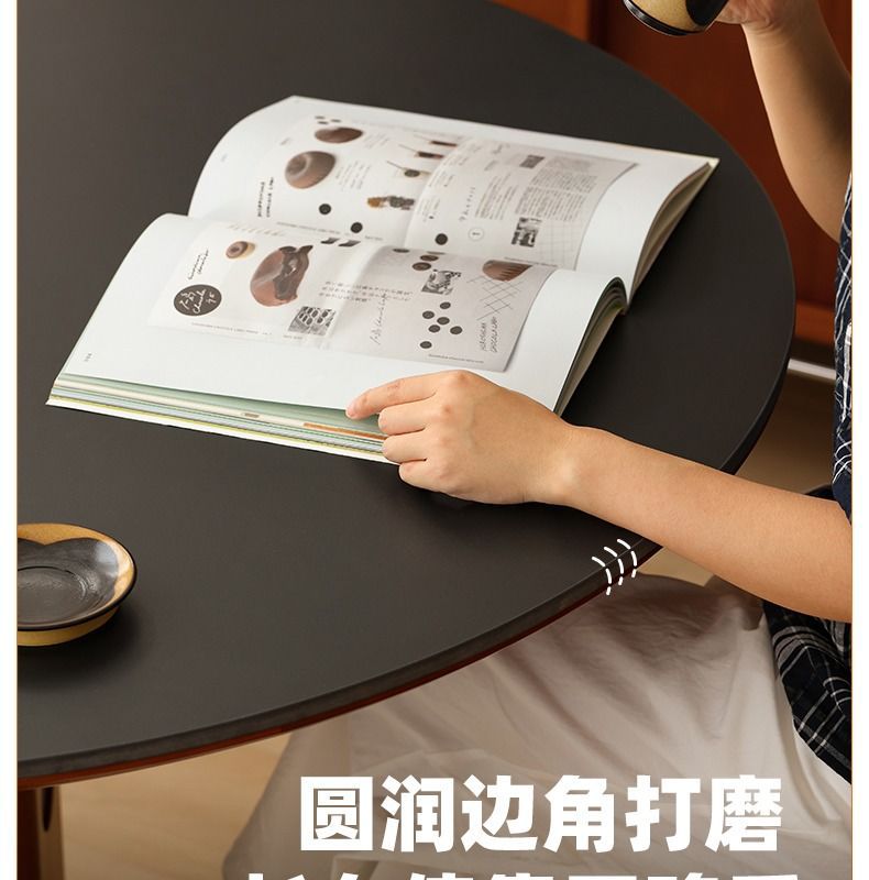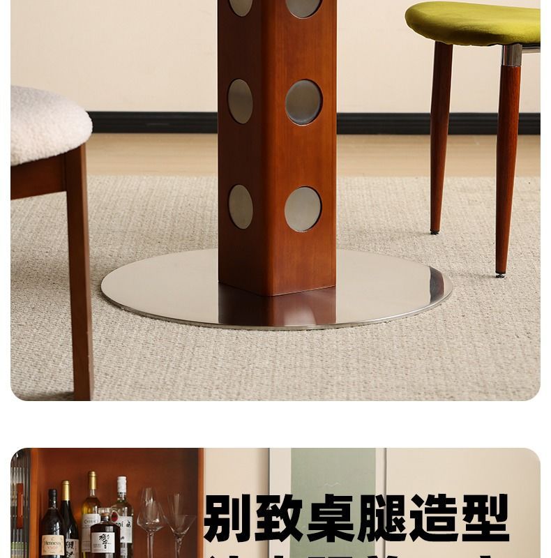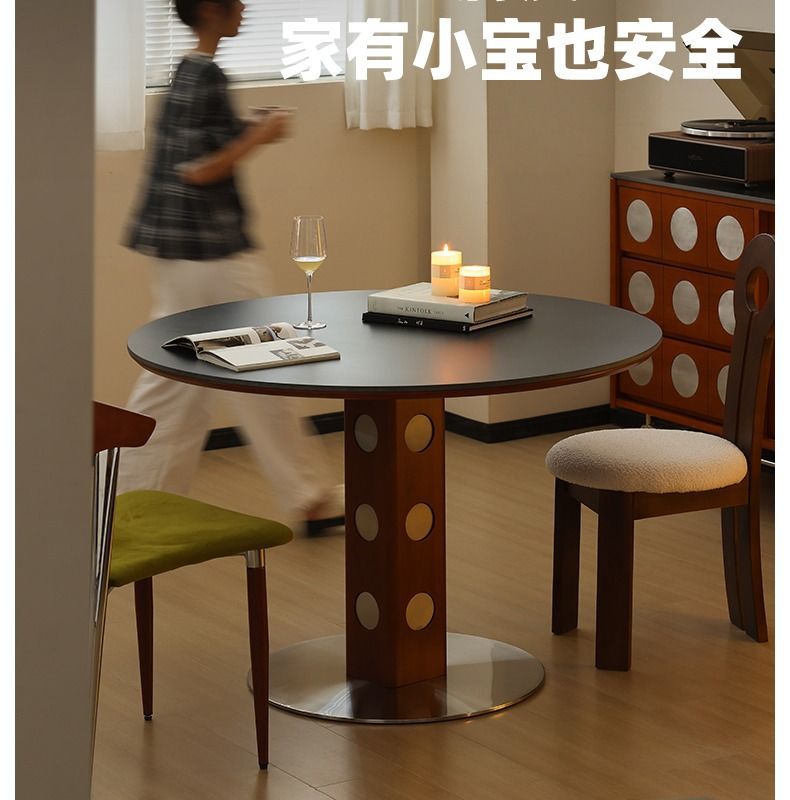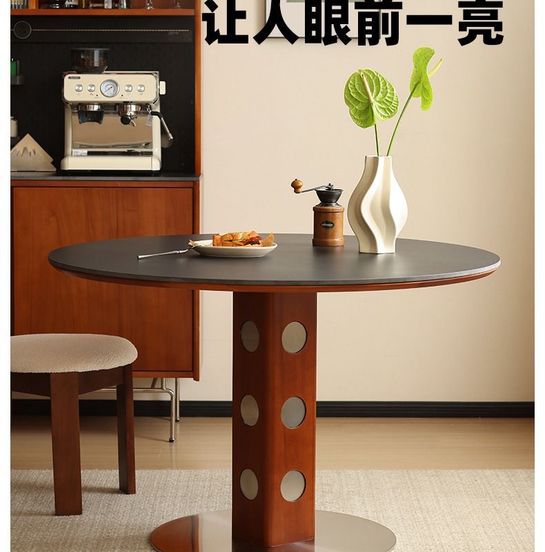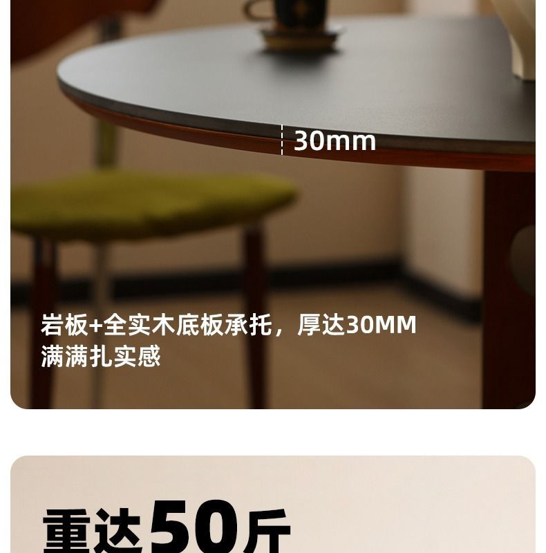 中古风实木圆型餐桌可折叠转变成长方形功能餐台家用小户型岩板桌