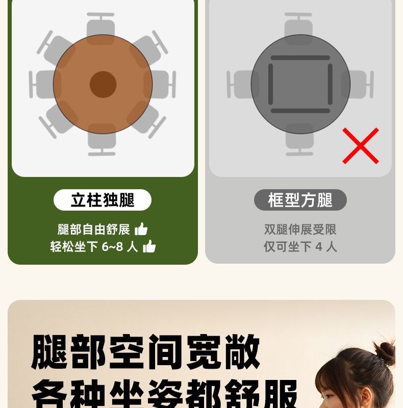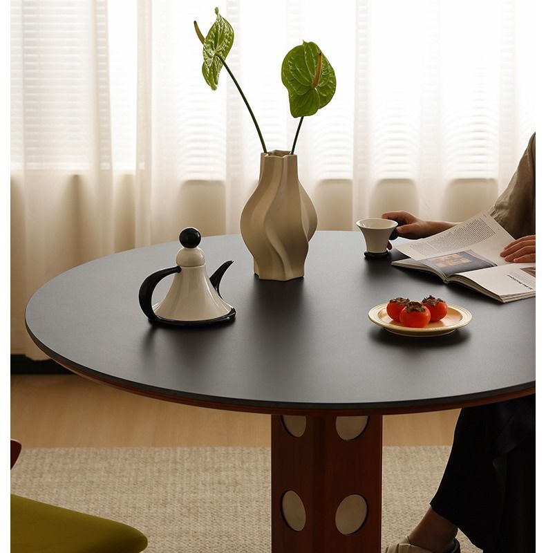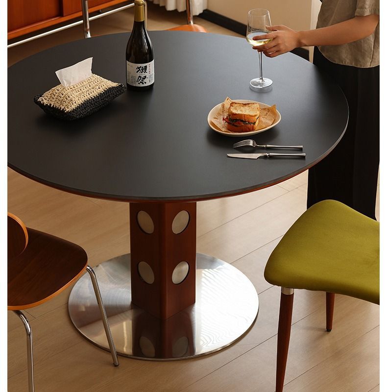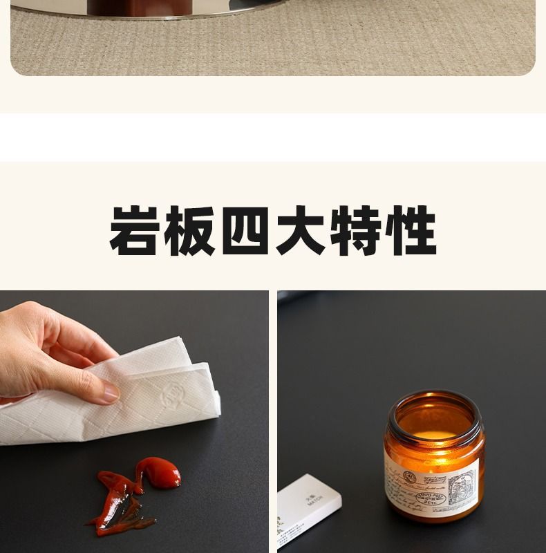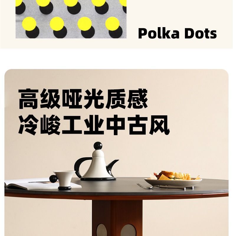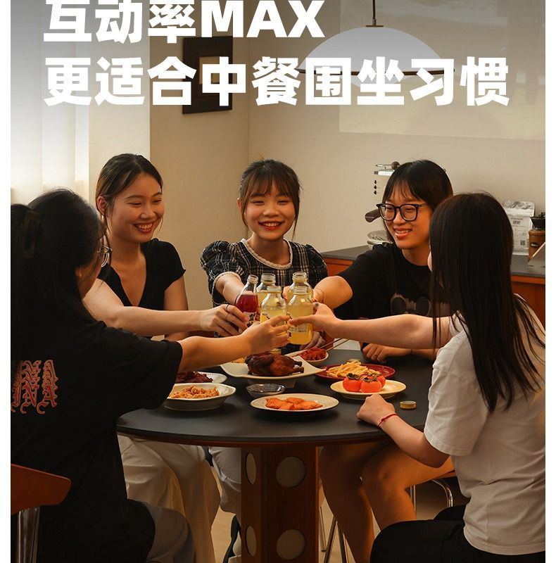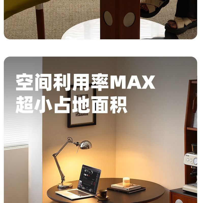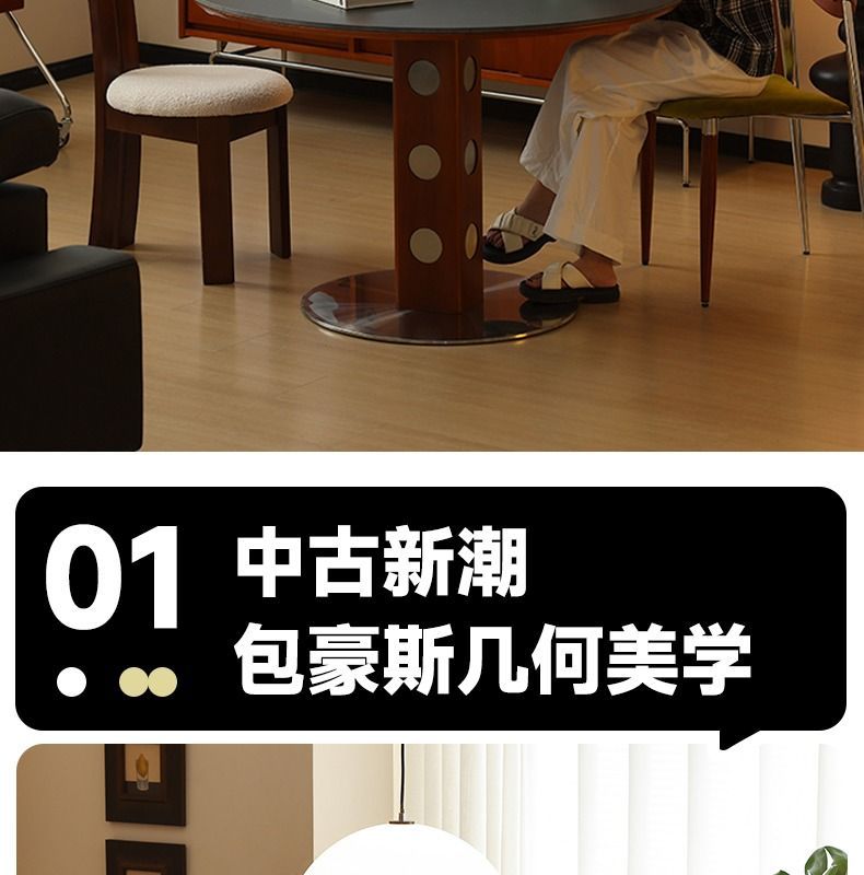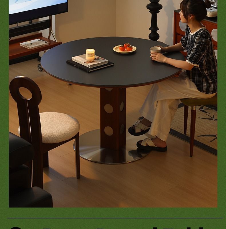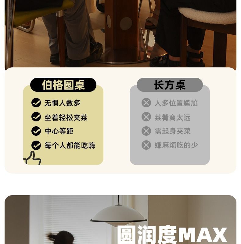 中古风实木圆型餐桌可折叠转变成长方形功能餐台家用小户型岩板桌