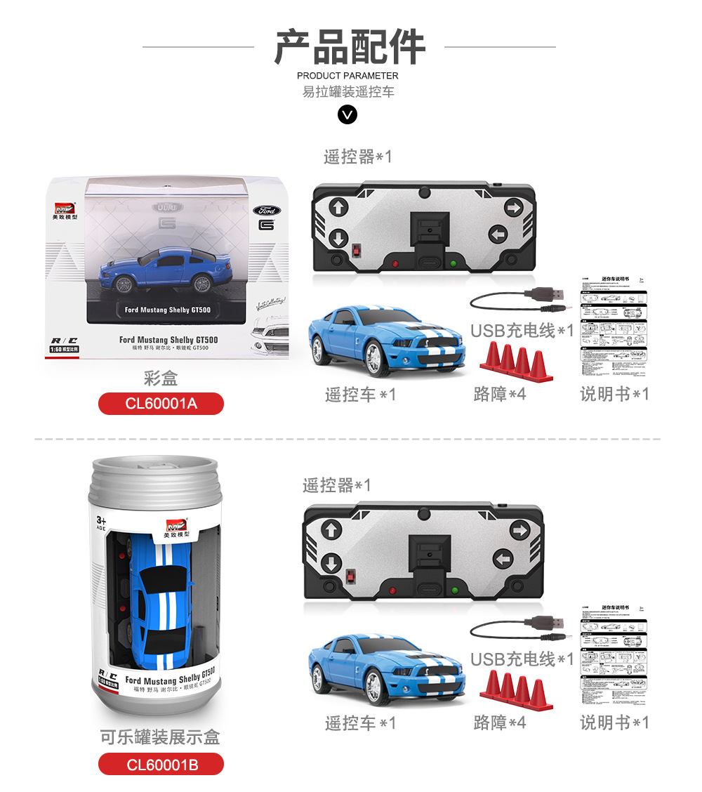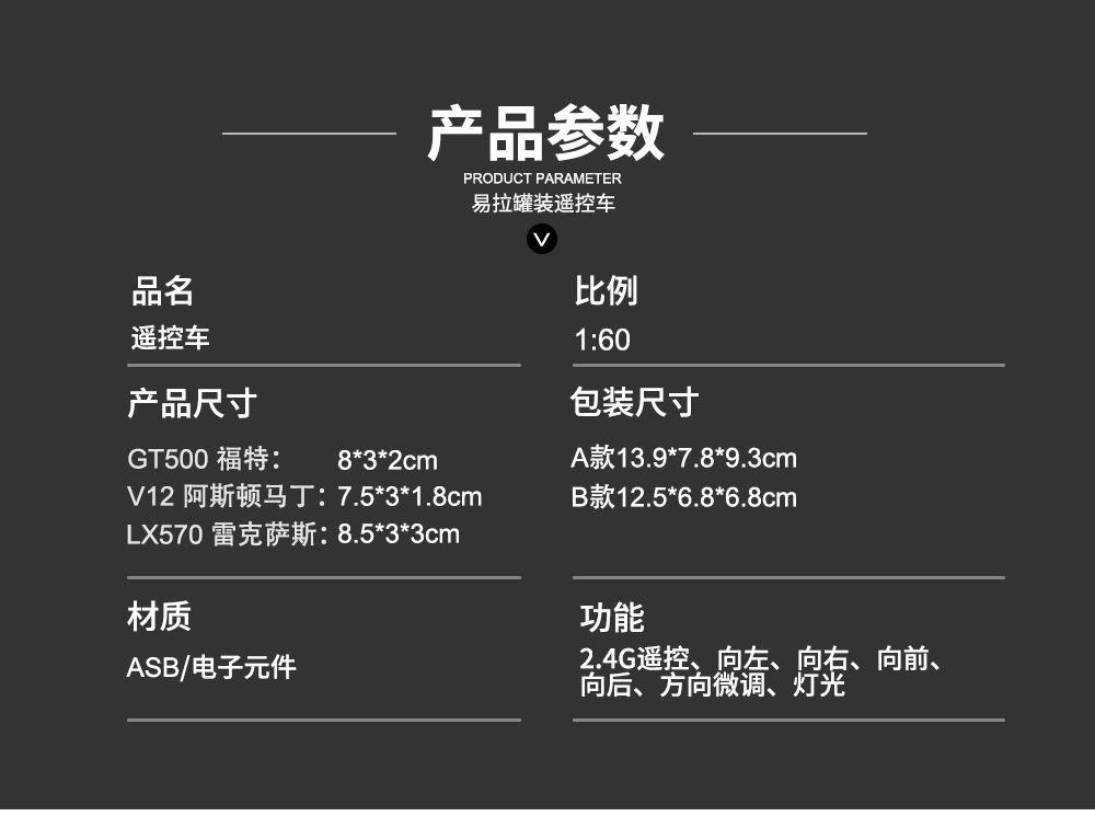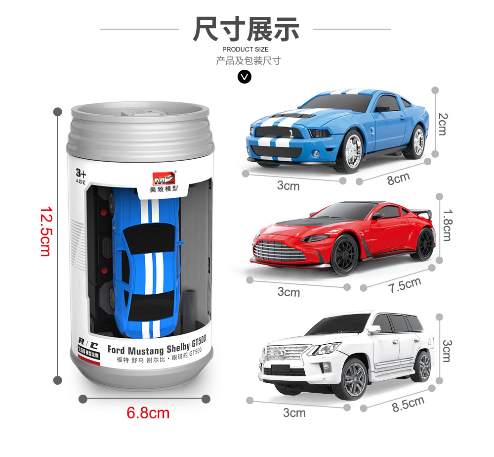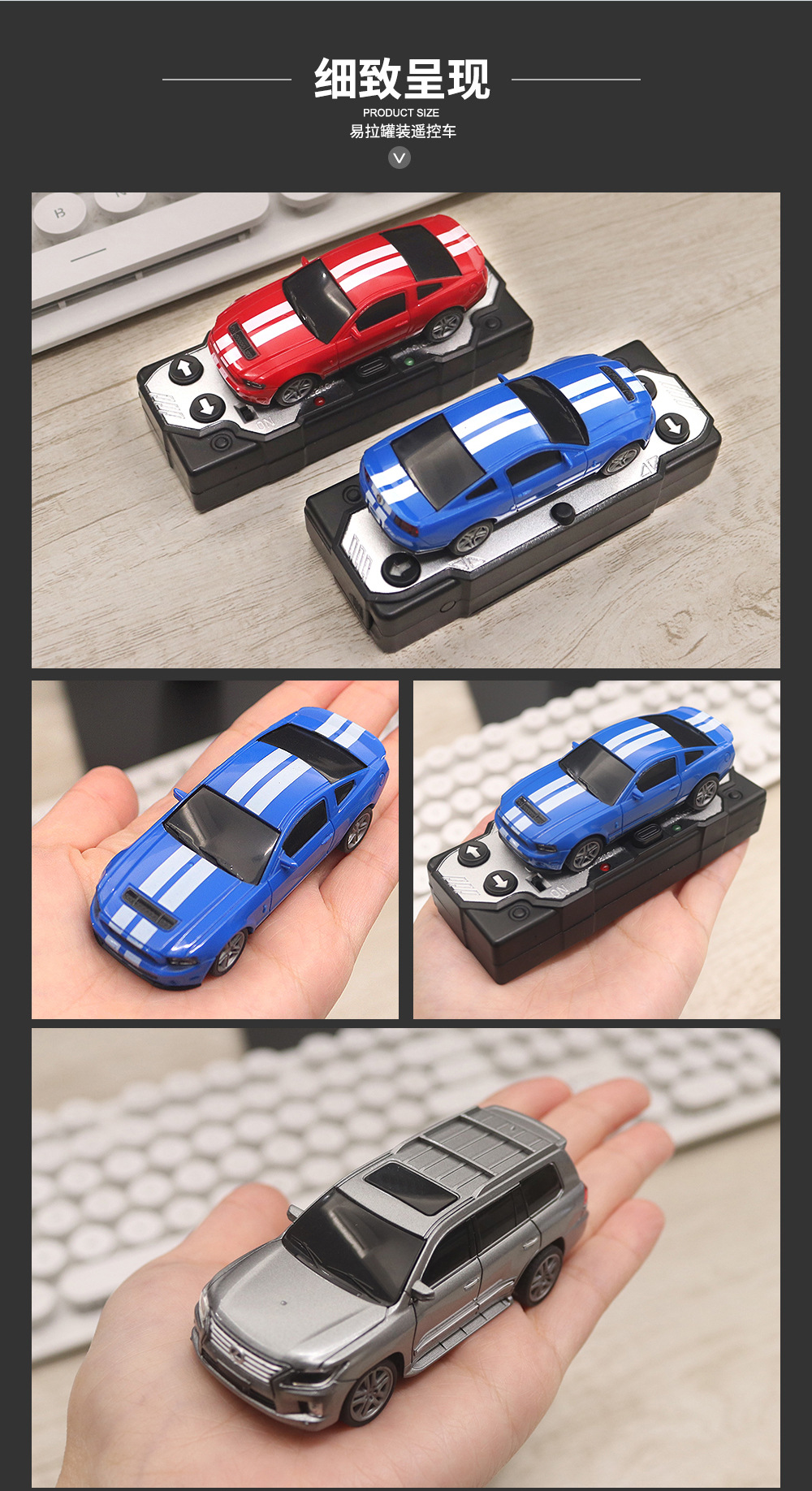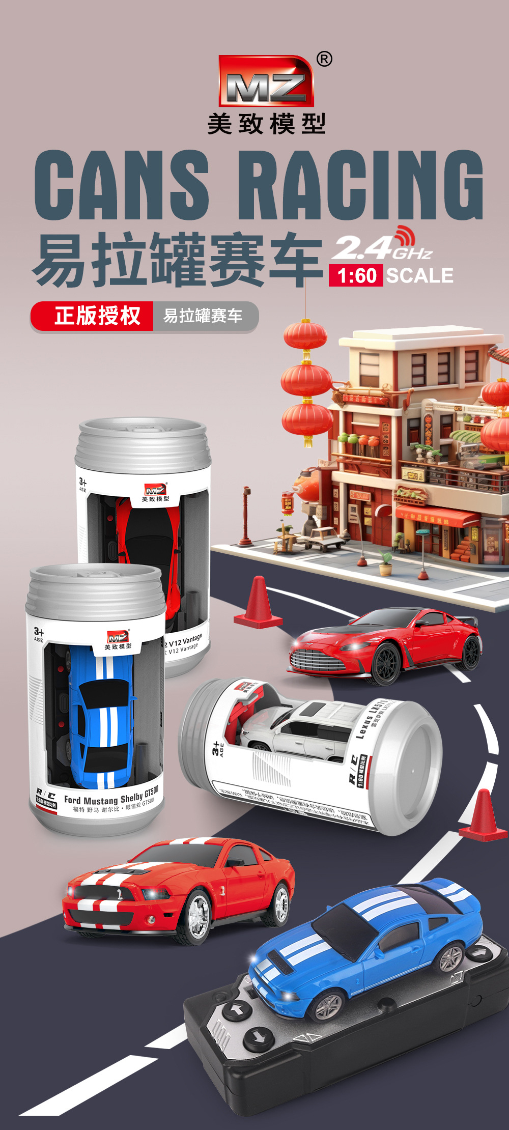 美致正版授权1:60易拉罐赛车无线遥控车带LED灯简易便携送礼佳品