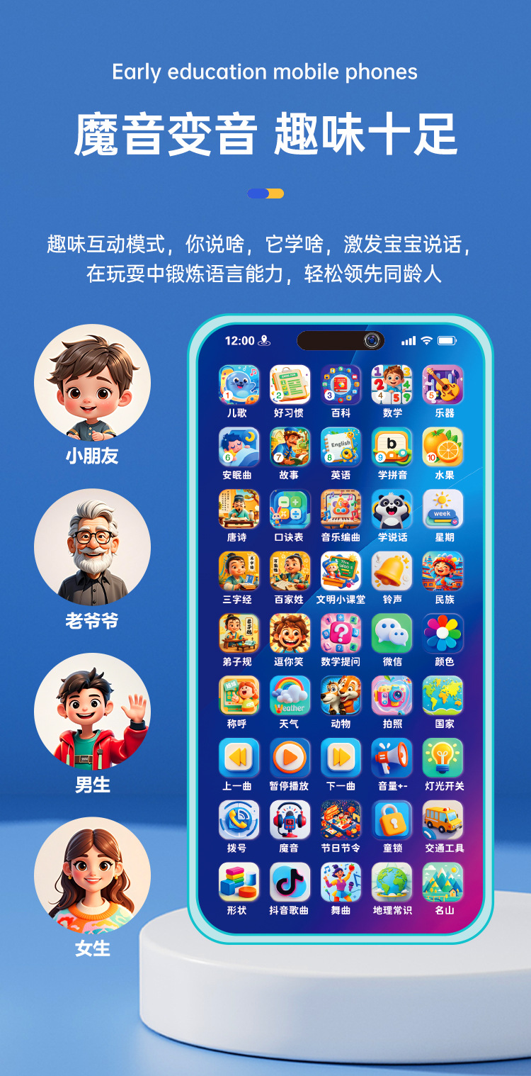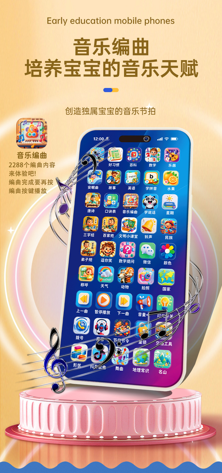 Children's Early Education Educational Mobile Phone Baby Multifunctional Learning Machine Music Simulation Phone Story Machine Boys and Girls Toys