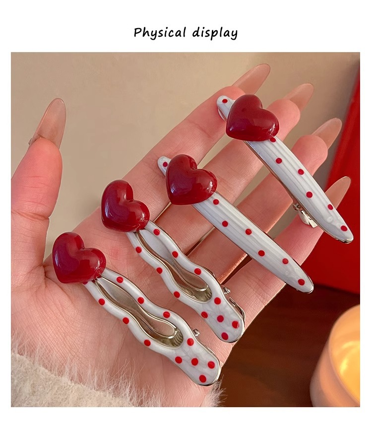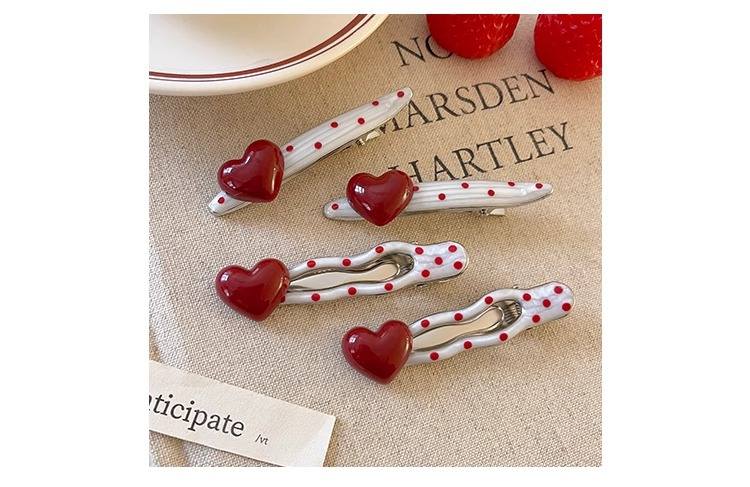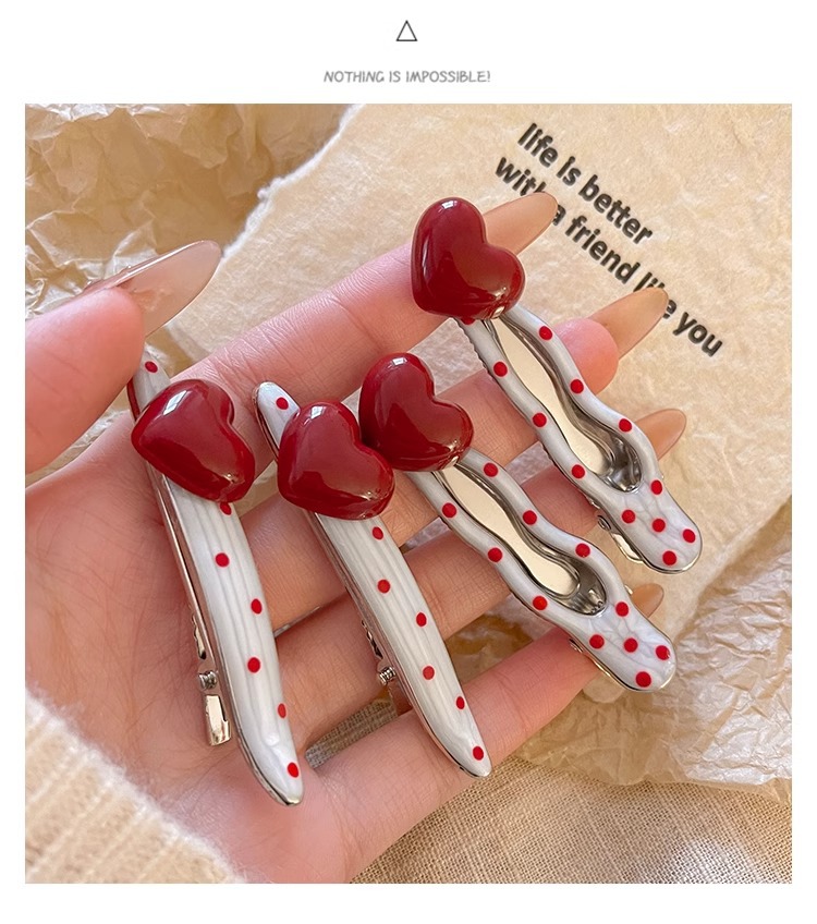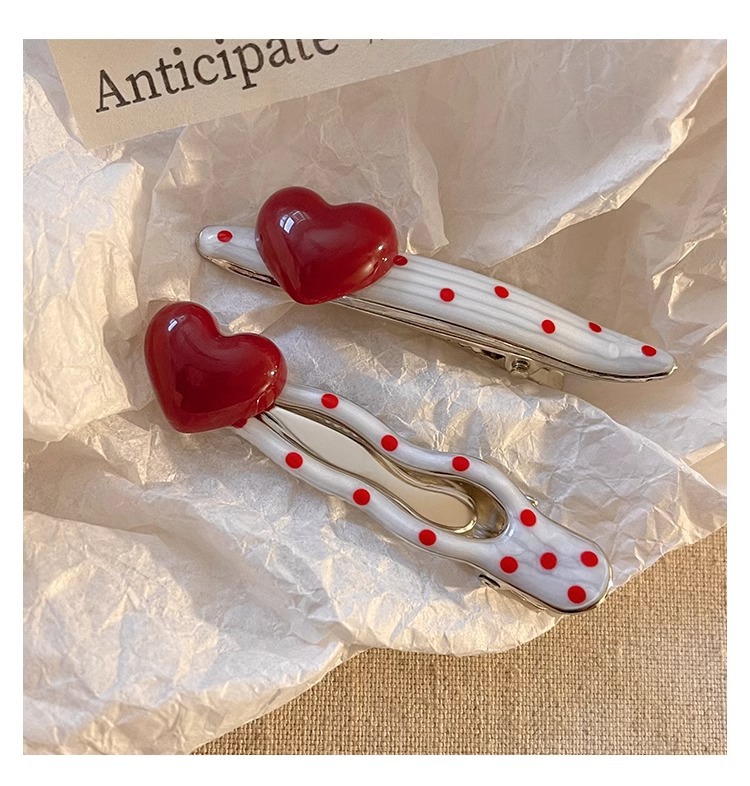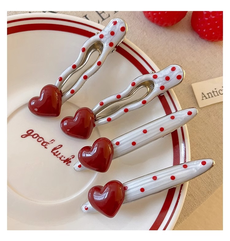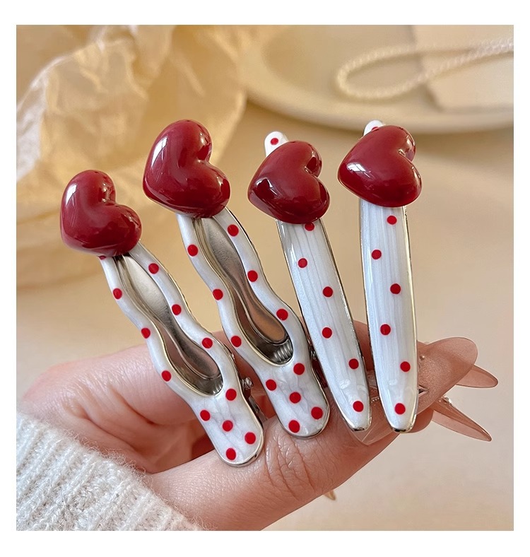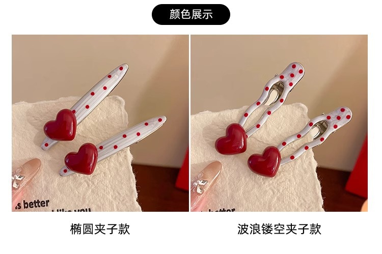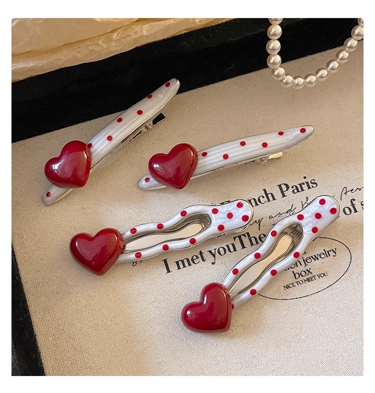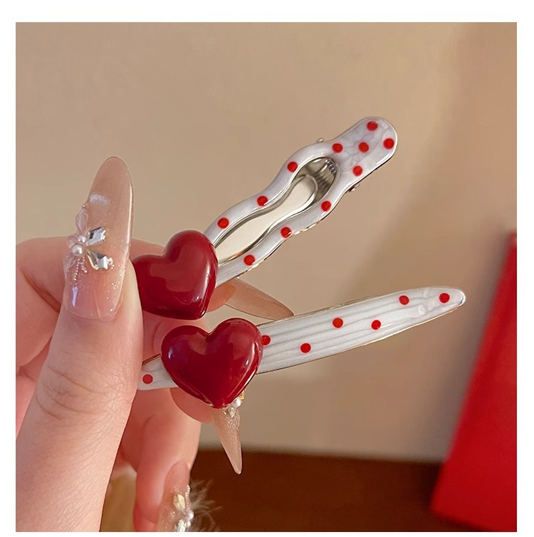 Red Wave Dot Love Metal Hairpin Girly Temperament Bangs Clip Hairpin Side Broken Hair Duckbill Hairpin Hair Accessories