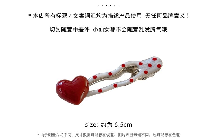 红色波点爱心金属发夹少女气质刘海夹子发卡侧边碎发鸭嘴夹发饰品