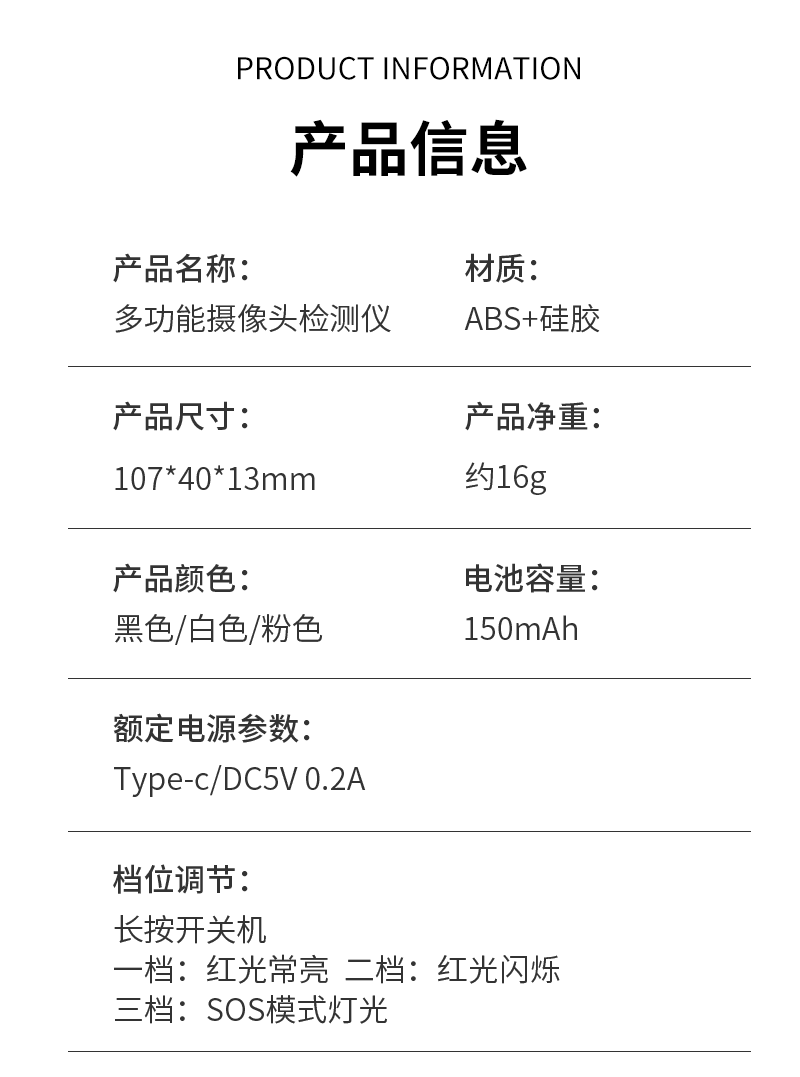 产品名称:多功能摄像头探测仪;