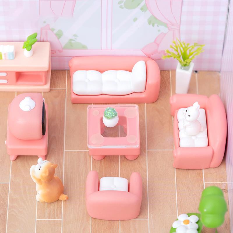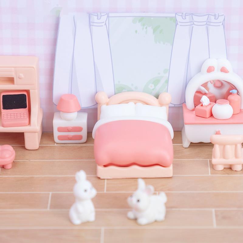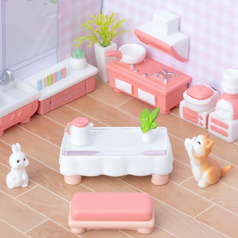 Miniature Kitchen, Bedroom, Living Room, Bathroom Furniture Supplies, Dollhouse DIY Room Decoration Model Accessories