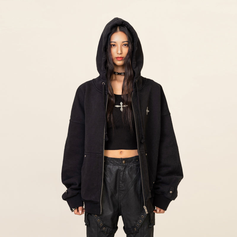 SMFK外套经典十字花涂鸦/荒野营地阔身帽衫三色连帽卫衣女