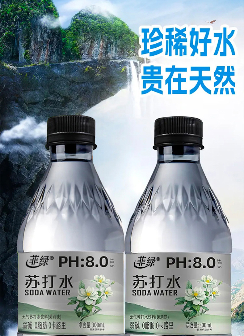 菲绿&饱矿茉莉味苏打水300ml*12瓶户外便携柔水质解渴解腻水饮料