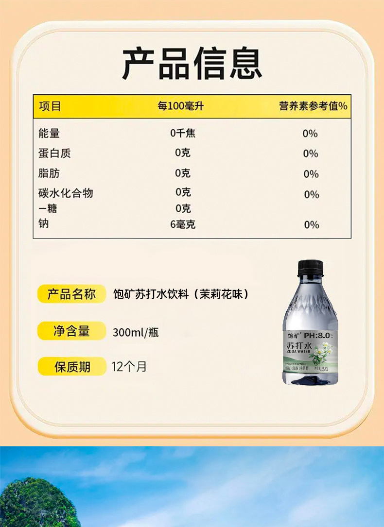 茉莉味苏打水【整箱12瓶】300ml/瓶*12瓶