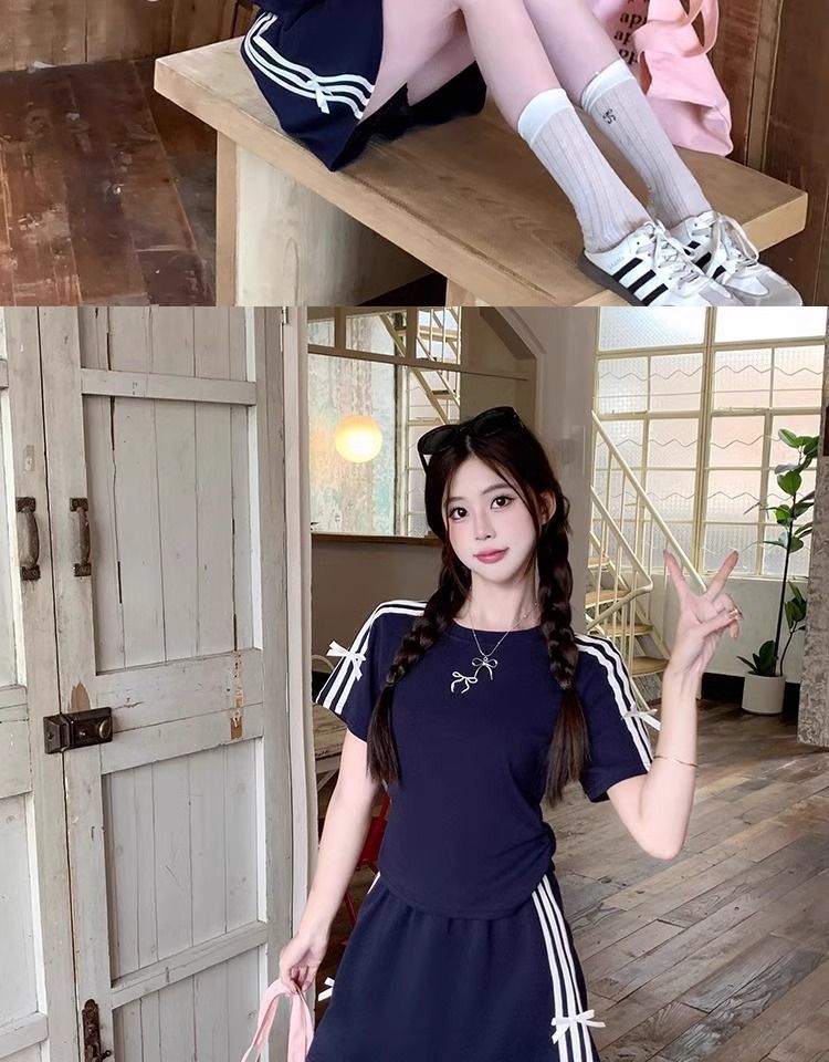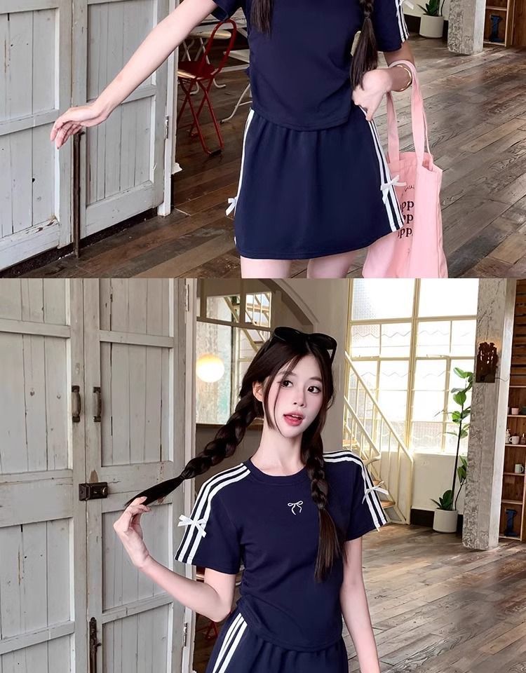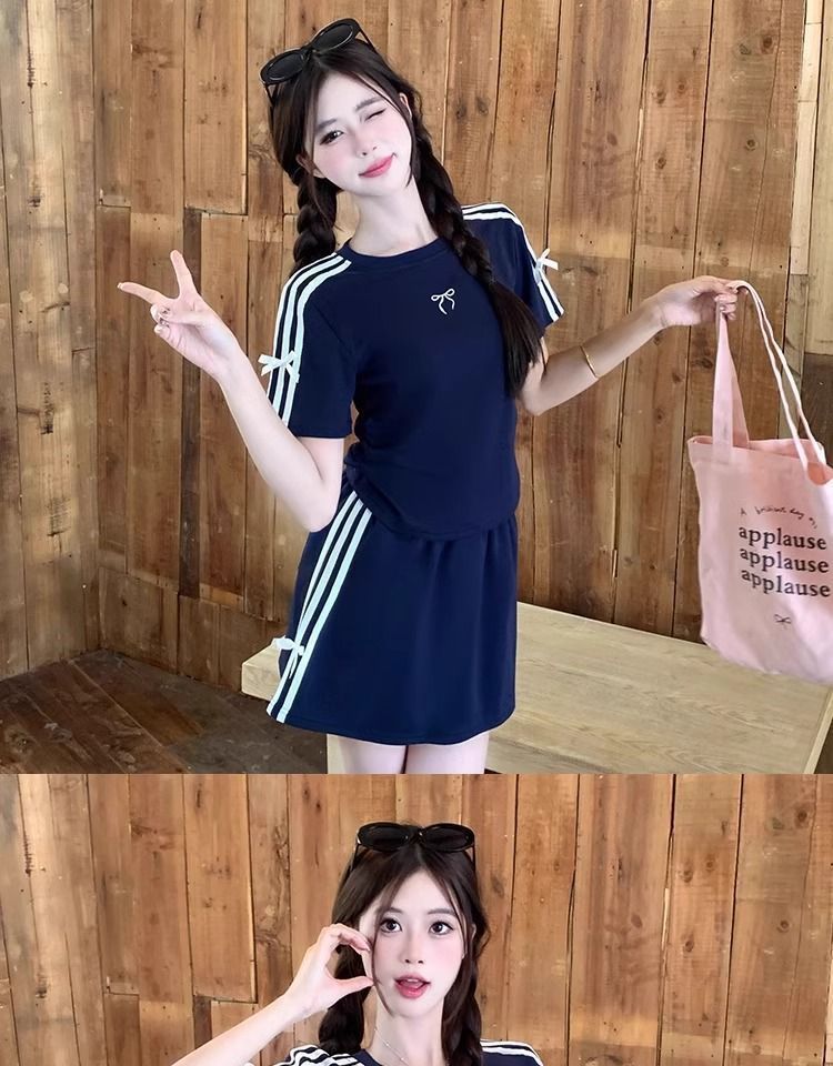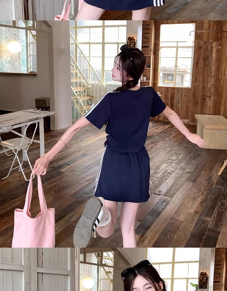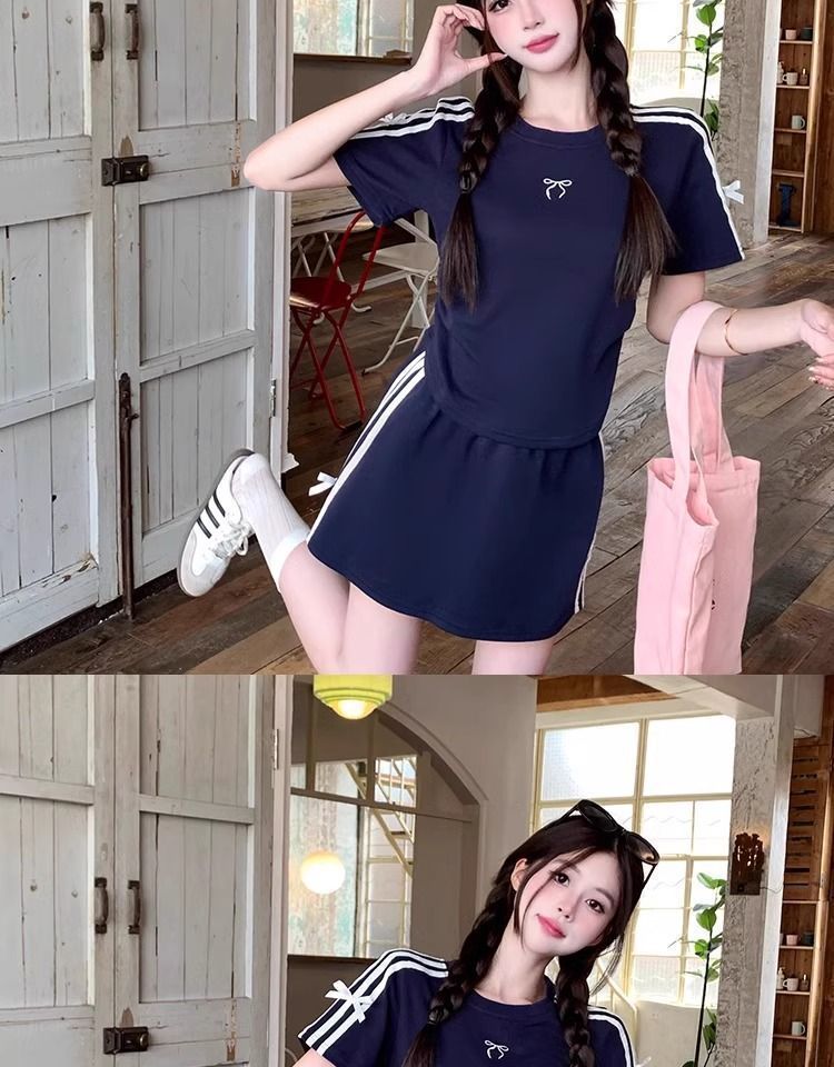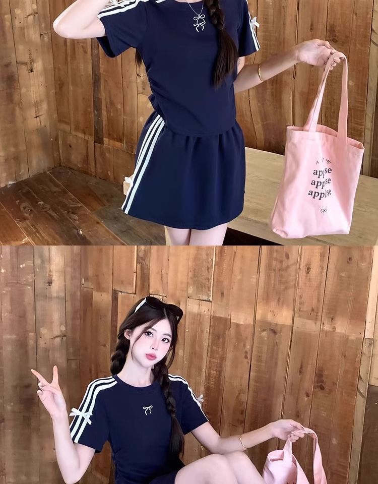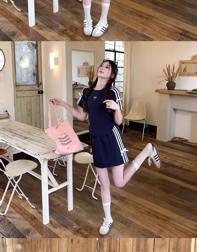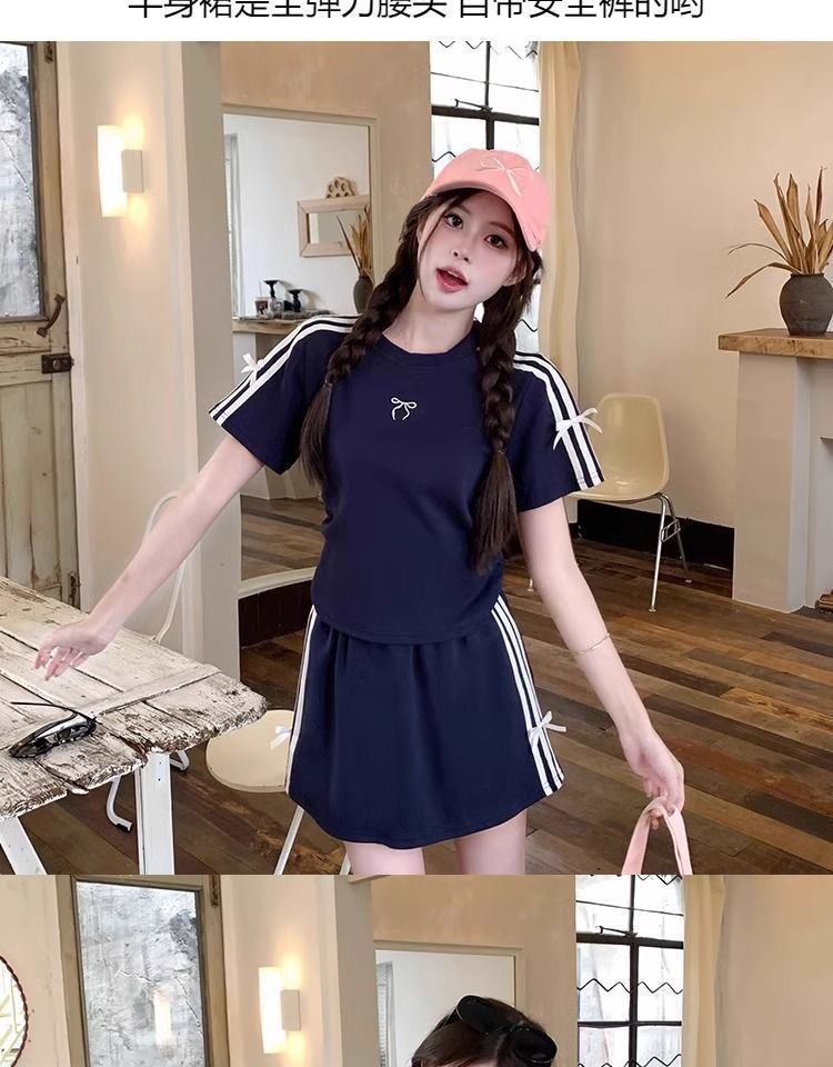 夏季跨境爆款女装时尚休闲运动套装女刺绣T恤+包臀裙显瘦两件套