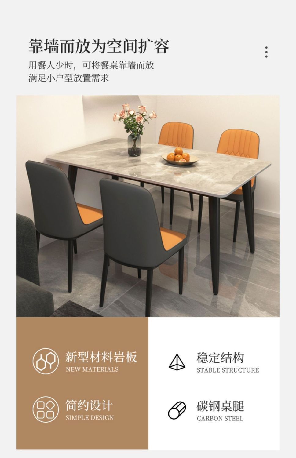 岩板餐桌椅组合家用吃饭现代简约2025新款高级感小户型长方形饭桌