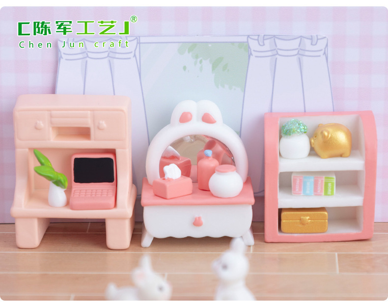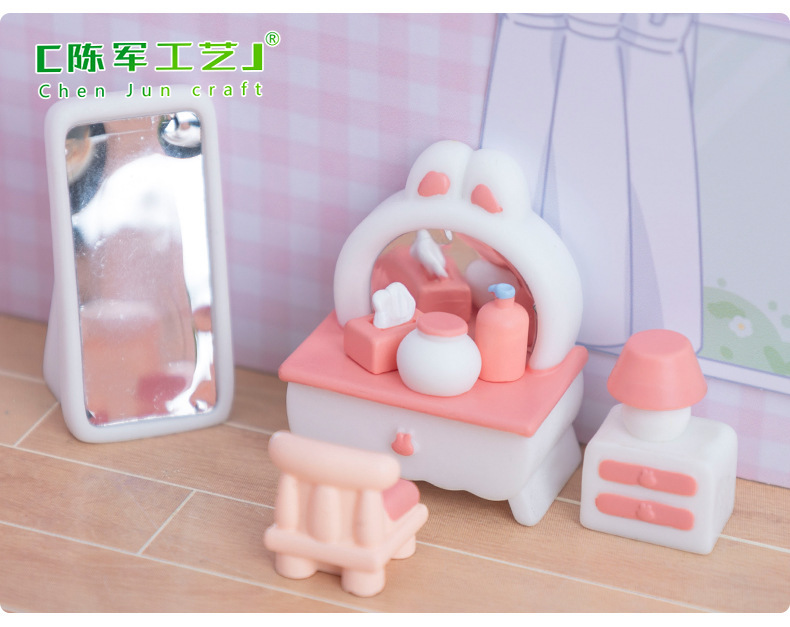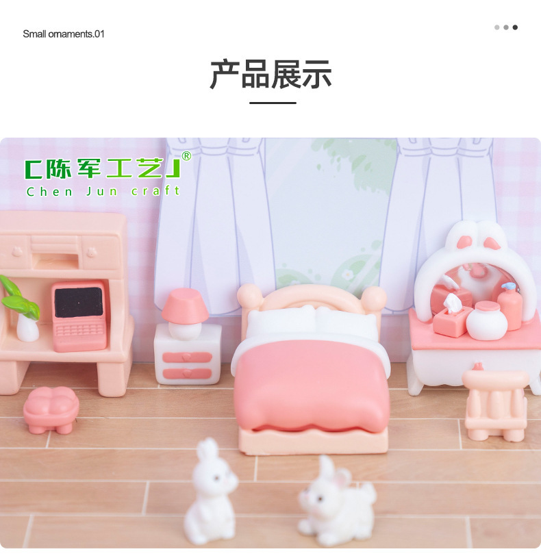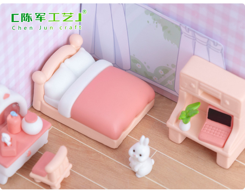微景观创意粉色少女心卧室装饰品配件 娃屋diy微缩家具模型小摆件